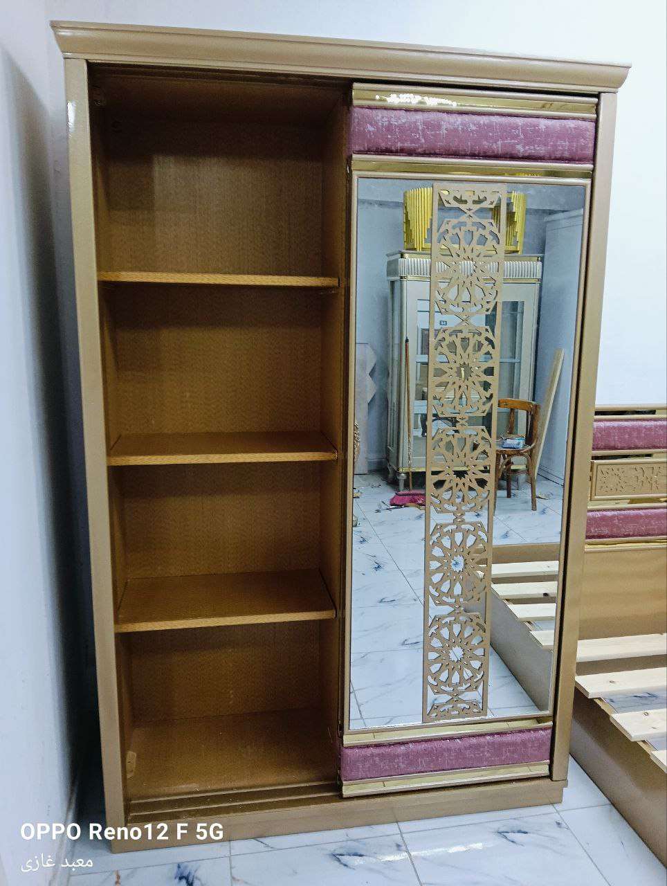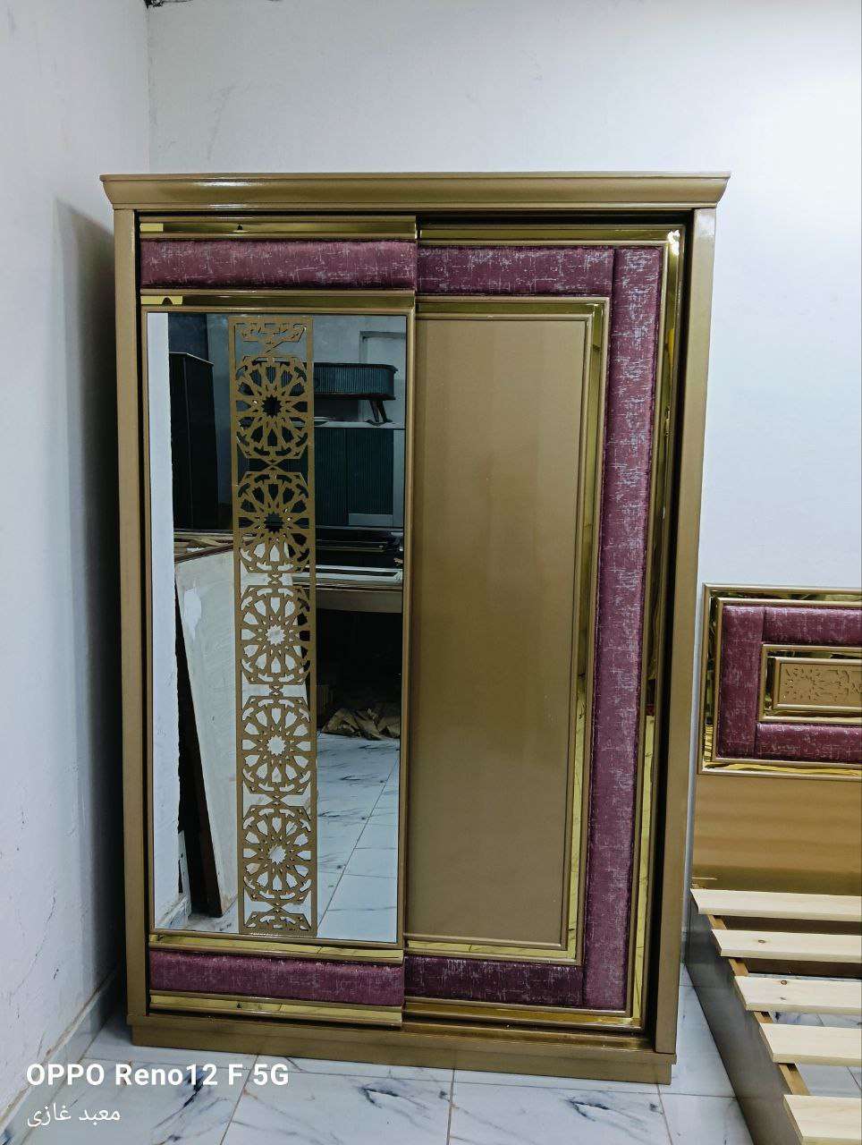 فوري على التحميل غرفه اطفال او شبابي دولاب ١٥٠ ارتفاع ٢٢٠ خشب كبس محمل دهان دوكو لون شمبين بتنجيد درج سفلي ٢ سرير ١٢٠ *١٩٥ بتنجيد واستانلس كيمود ومرايا بدون ملل
