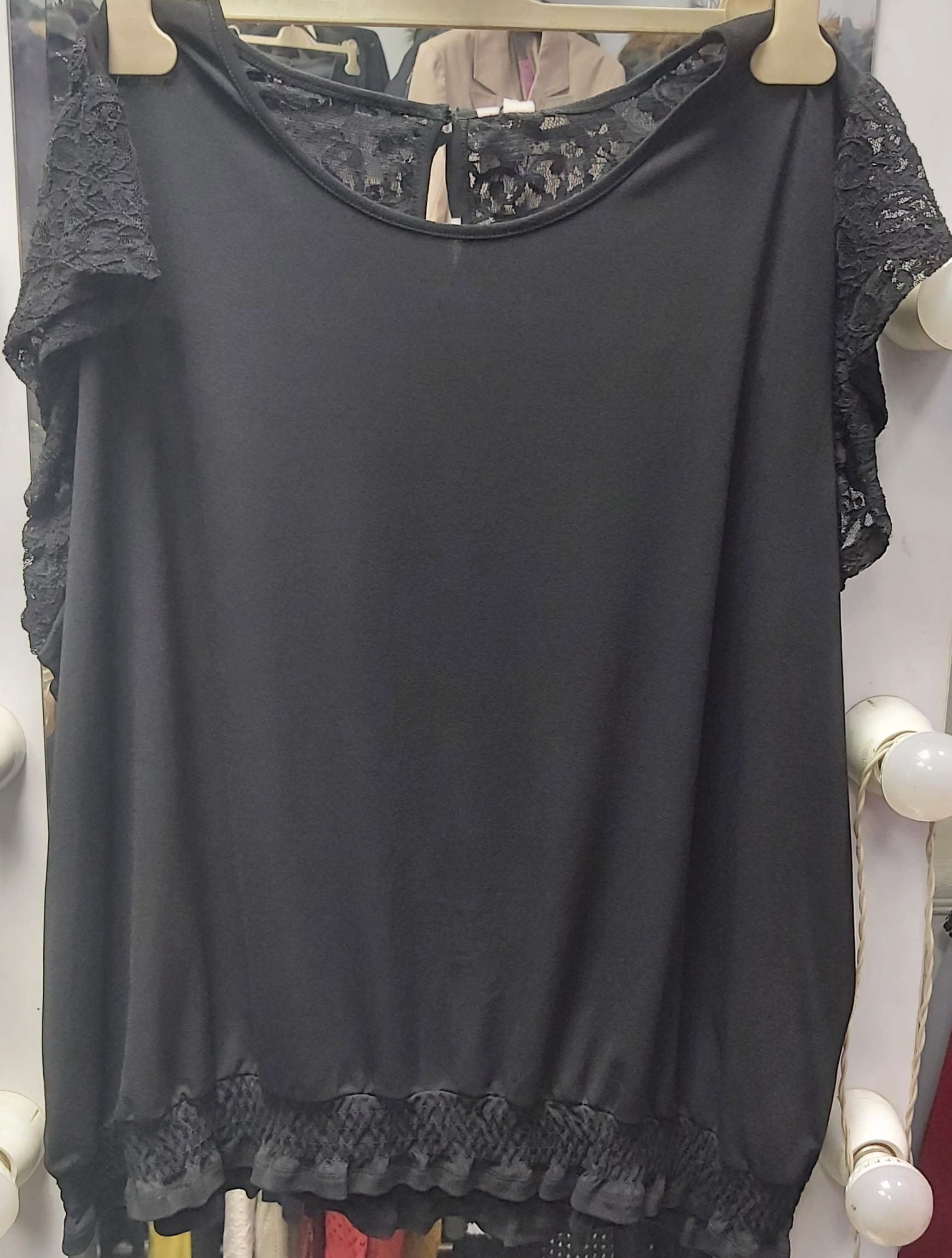 بلوزه اسود مطعمه بالجيبير علي الكم والظهر استوك براند