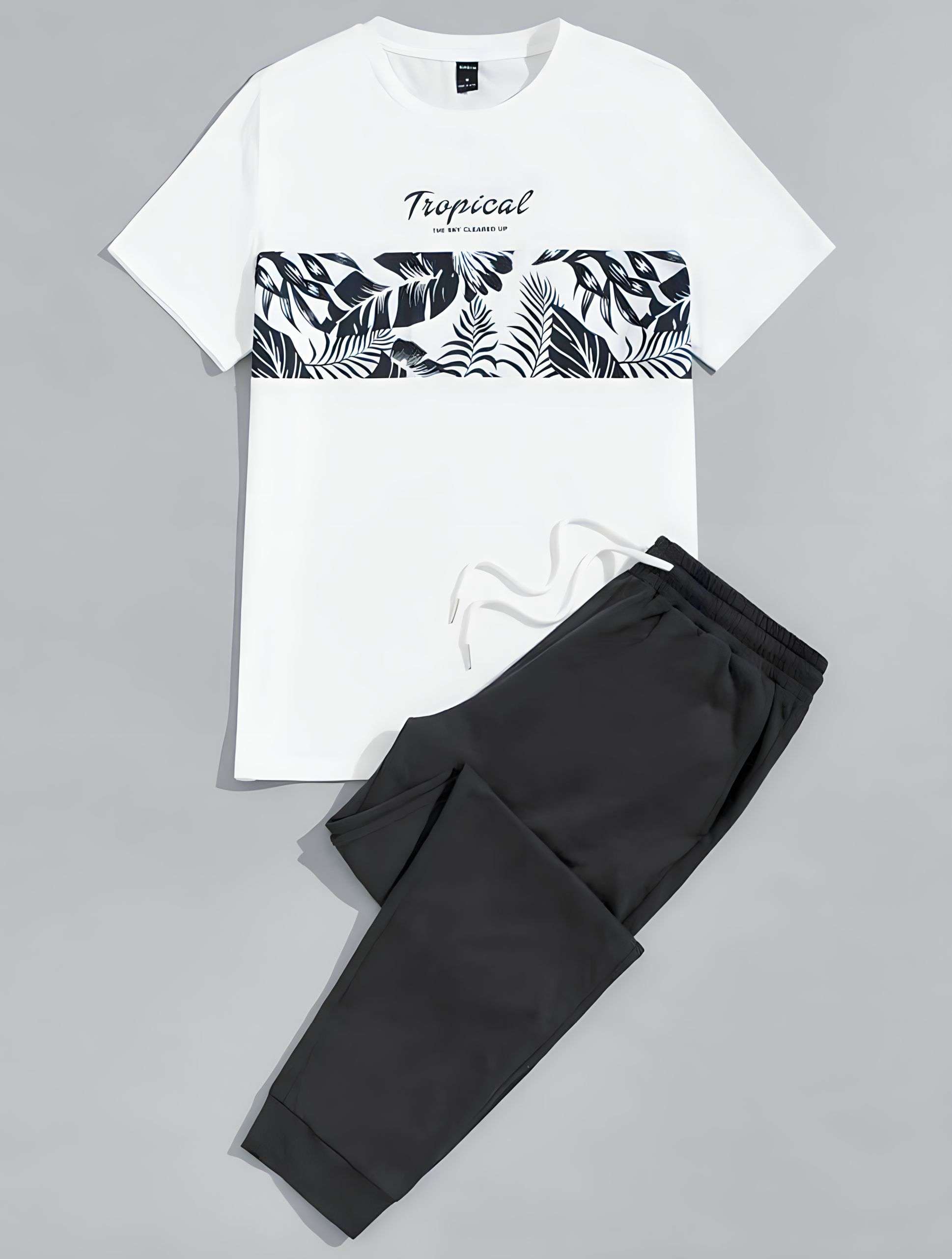 ترنج الصيف Tropical- خامة التيشيرت برسولا قطن البنطلون ملتون ليكرا اعلي تجهيز - طباعه سلك سكرين - الالوان: اسود - كحلي - زيتي- المقاسات ( L- XL - XXL )- التلبيس:-L 55 kg : 70kg - XL 70 kg