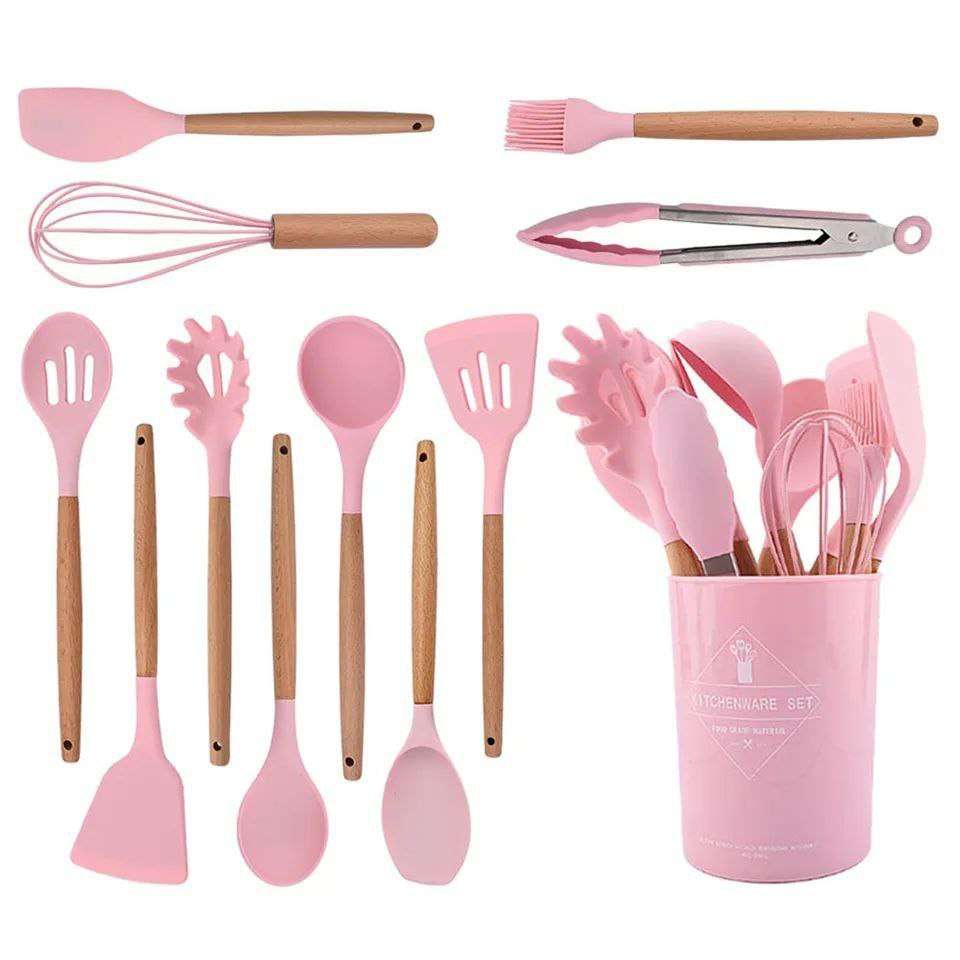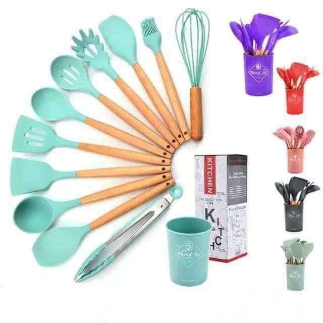 طقم توزيع متكامل 12قطعه + الحامل خامه سيلكون حراري بيد خشب كوالتي عالي بحامل كوب بلاستيك....حجم كبير سعر طقم 💫👑🥇😎