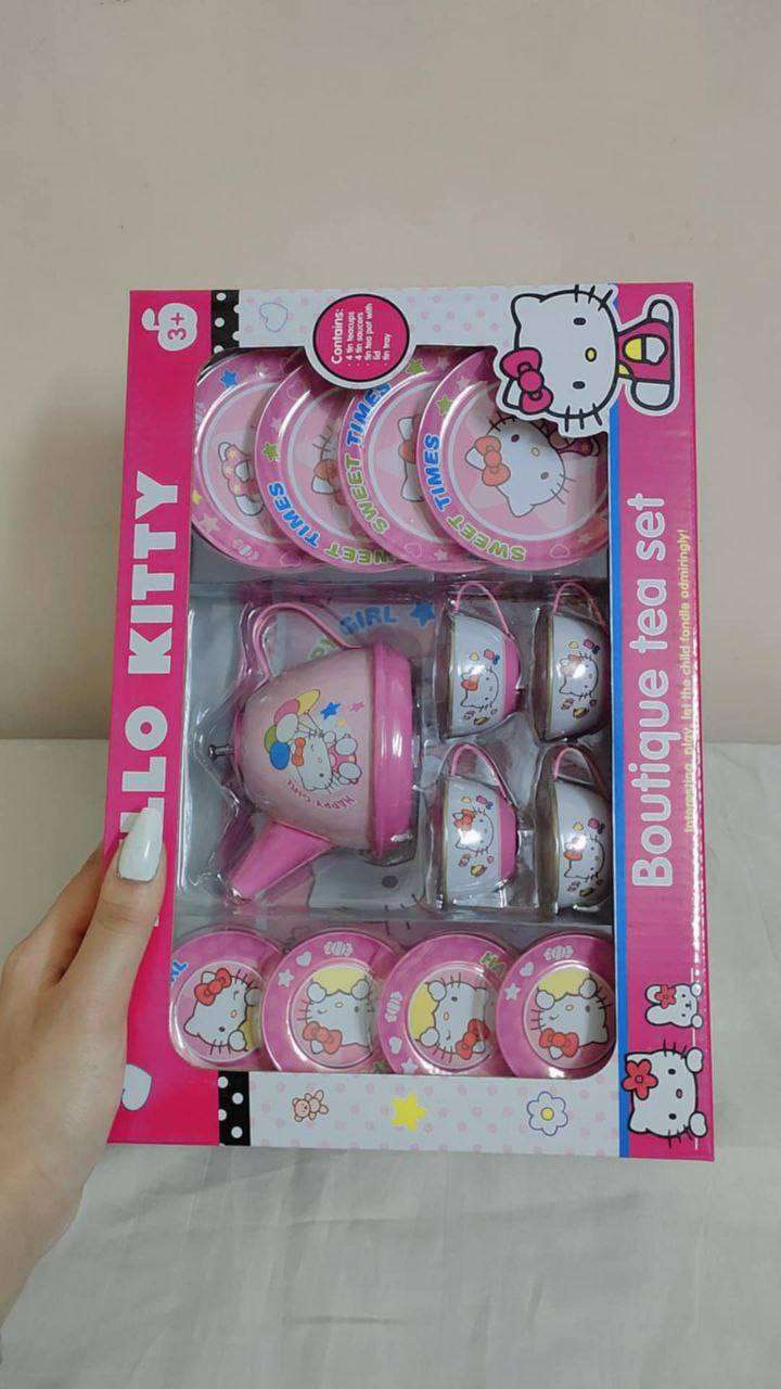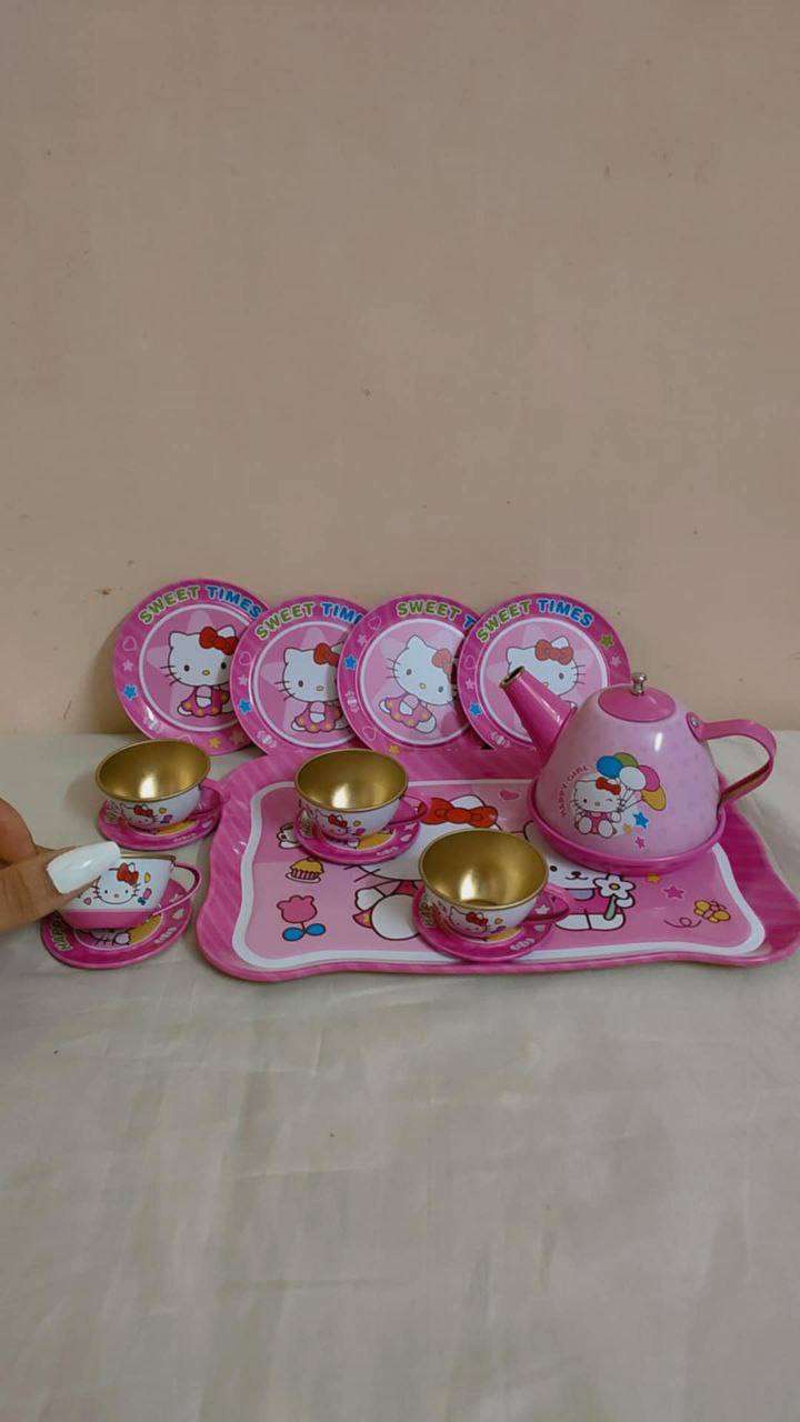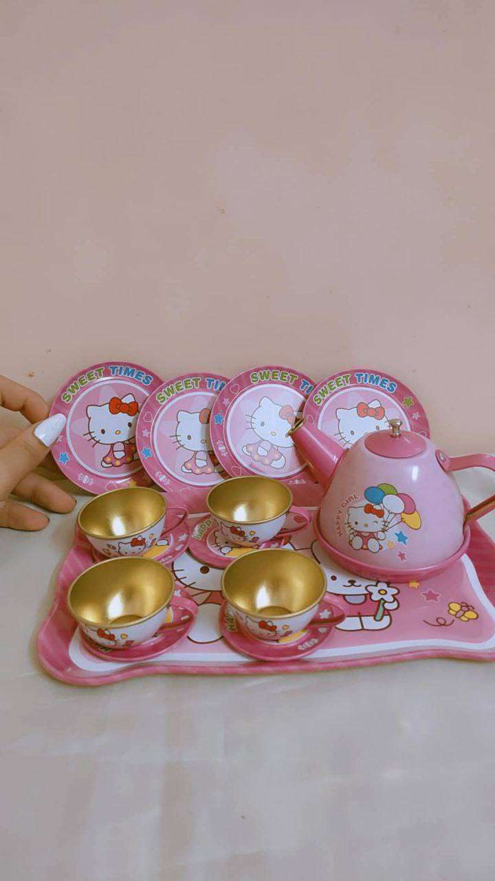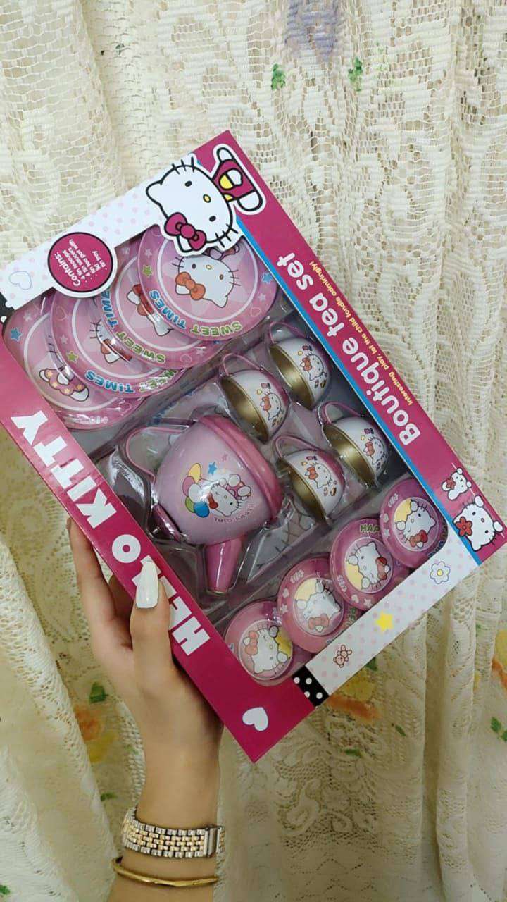 هيقضوا أحلى الاوقات مع بعض 🙈 وهيعملوا أحلى بارتي 💃☕ طقم شاى معدن 🤩 ⬅️ تصميم جذاب على شكل كيتي المحبوب لكل الاطفال 😍 ⬅️ طقم شاي ١٤ قطعة بالوان جذابة🤗 ⬅️ فى علبة فاكيوم 📦 شيك جدا