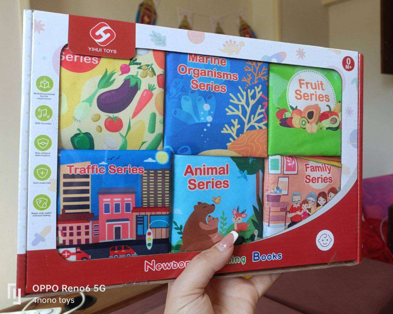 شكل جديد من بوكس كتب البيبي 6*1 بوكس يجنن شيك ألوانه مميزه وجميله مجموعه كتب سوفت مميزه جدا للبيبي ال 6 كتب مع بعض في بوكس كل كتاب بيتكلم عن حاجه الفاكهه و الحيوانات الخضروات و العائله وغيره