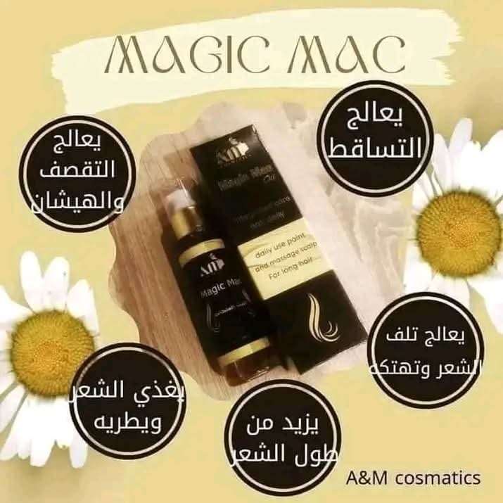 زيت ماجيك ماك المتكامل من شركة مكة براند A & M كوزماتبكس يعالج تساقط الشعر وتقصفه ويقضى على الهيشان ويساعد على إطالة الشعر