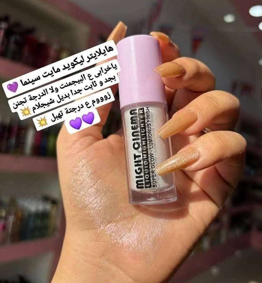 هايلايتر ليكويد مايت سينما 💙♥️🌸 الهايلايتر السائل بديل شيجلام من مايت سينما  🤍🤍 هايلايتر سائل يتميز بملمسه الناعم يندمج بسهولة غير لزج يعطي إضاءة جميلة جدا 🌸يتميز بثباتية عالية جدا يدوم