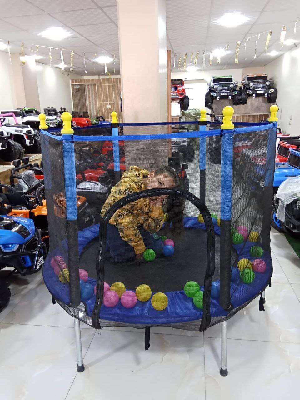 ترامبولين معدن قوي بشبكة حماية كامله القطر 140 سم 140ارتفاع يحمل حتى 4 أطفال بوزن إجمالي 180 كيلو جرام سوست معدن قوية جداً السعر داخل العرض