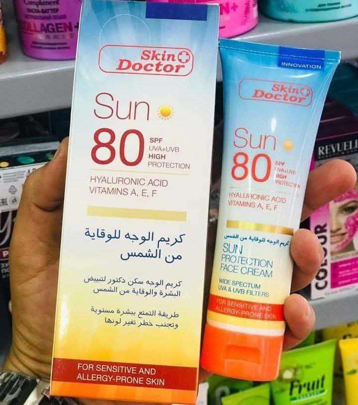 skin doctor sun protection face cream صن بلوك سكين دكتور😍 ☀️☀️☀️☀️☀️رااااائع مافيش غنى عنه فالصيف... خروج الصبح والسفر صن بلوك سكن دكتور التايلاندى معامل حمايه 80SPF 👇👇👇👇 👇👇👇👇