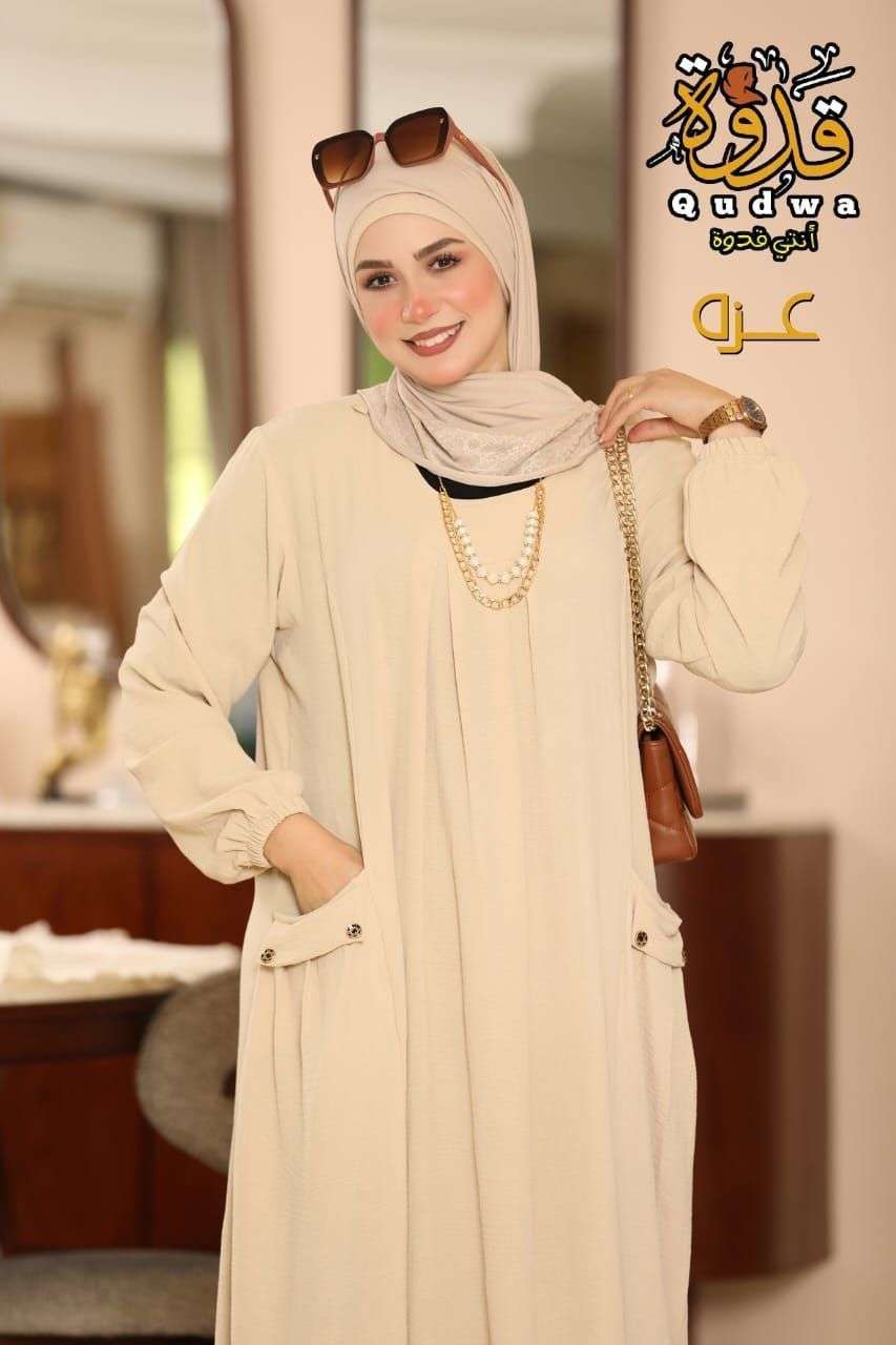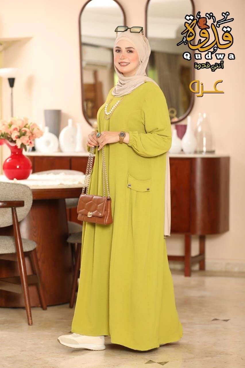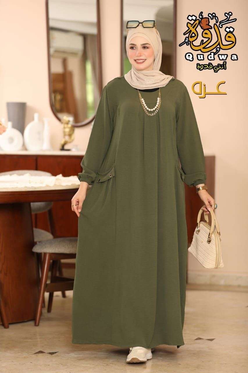 جديد من براند " قدوة " موديل : عزه 💕 دريس شيك جدًا ، واسع وعملي ومريح و مناسب لكل الأوقات والمناسبات.. ❤️🔥 ماتريال:- cy مستورد عالي الجودة 🍃 مقاس: free size ❤️🔥 المقاس بنصف محيط