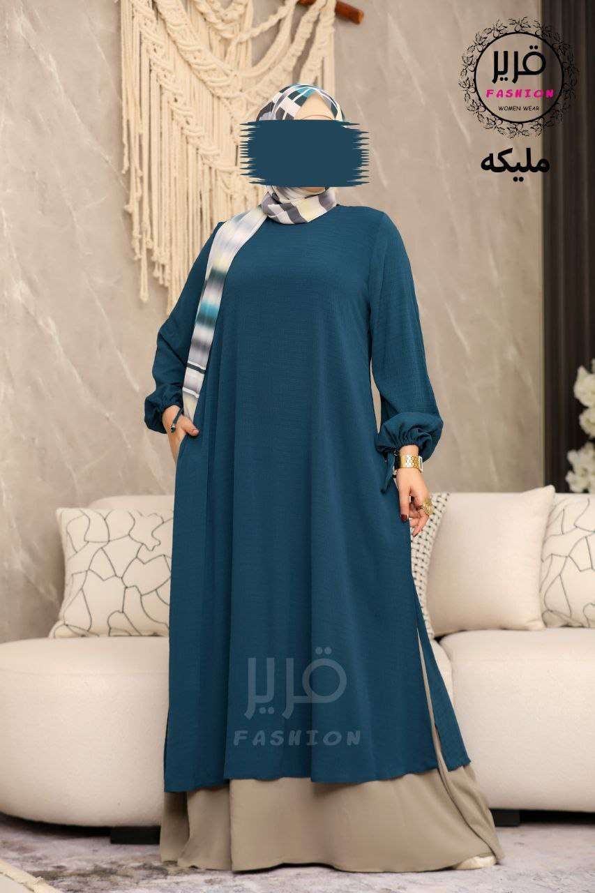 الجديد من براند قرير 🌷 موديل مليكة ♥️☘️ -دريس بديزاين رقيق وجميل جدًا، مُكون من قطعتين متصلين.. بيزك طويل بجيبين، كاردي متصل سمبل جدًا كُم سمبل بأسورة حبل ✨ ماتريال:- كتان يوريا عالي الجو