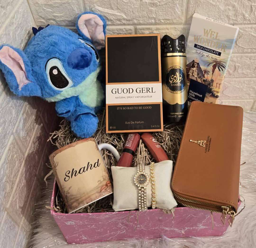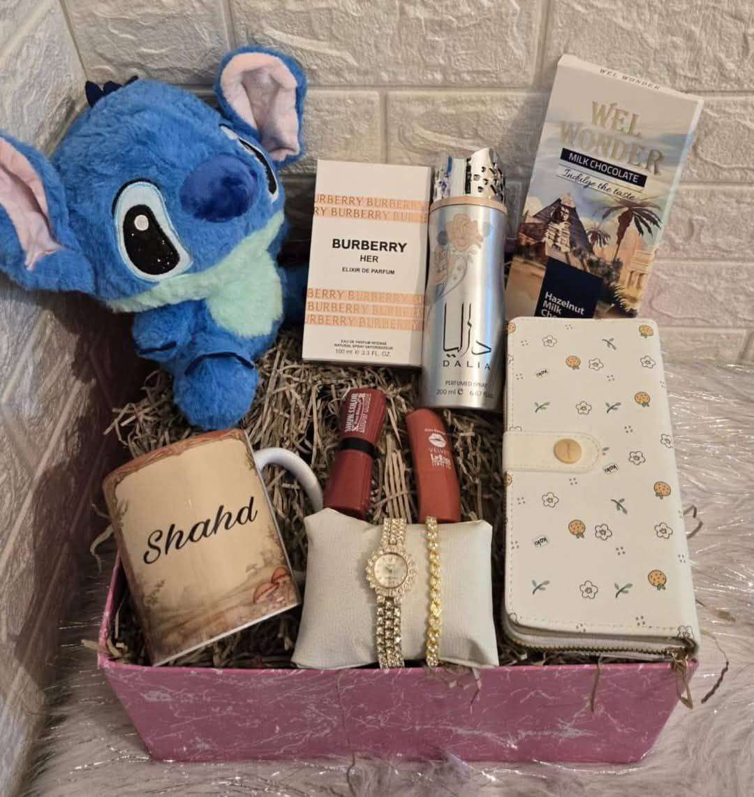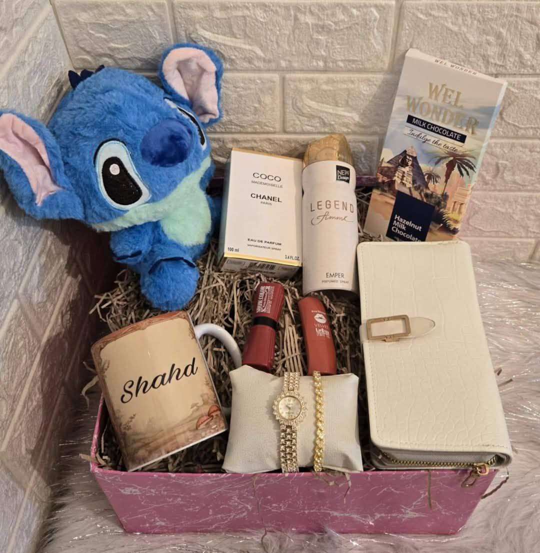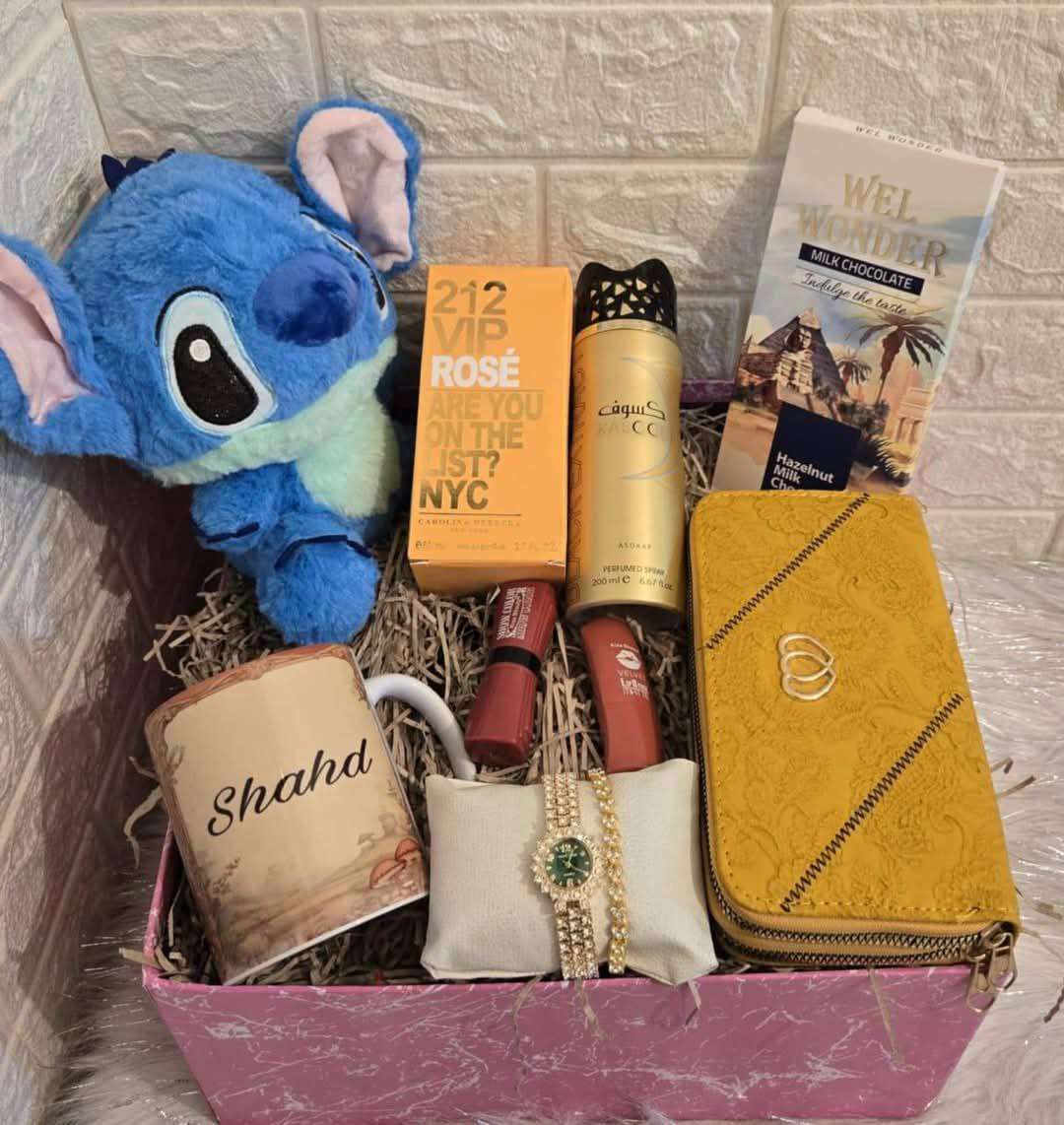 بوكس حريمي 9 منتجات بسعر منتج واحد 🤗 🔸دبدوب ستيتش 🐻 🔸مج مطبوع ☺️ 🔸بيرفيوم حريمي بروائح تحفة 🥰 🔸اسبراي حريمي بروائح تحفة 🤩 🔸ساعة حريمي شيك جدا 💛 🔸بوك اشكال تحفة 😎 🔸2 قلم روج سايل 💄