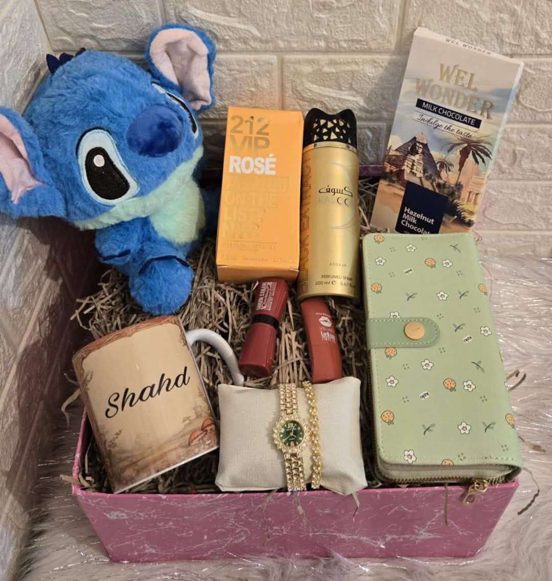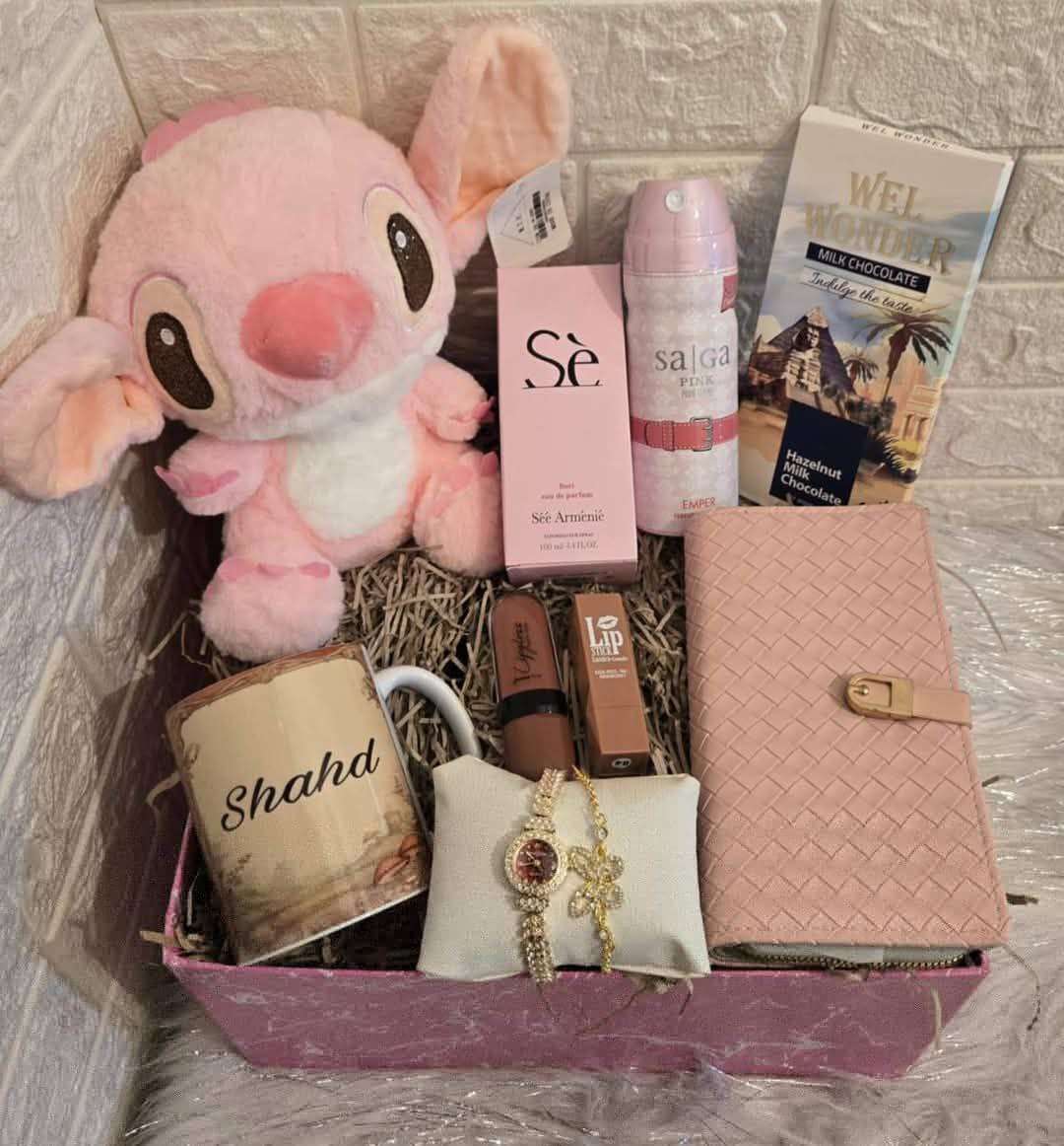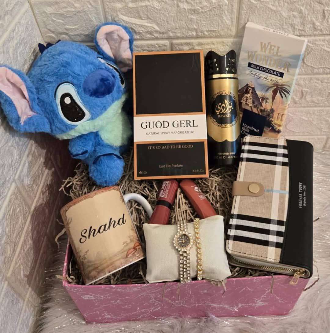 بوكس حريمي 9 منتجات بسعر منتج واحد 🤗 🔸دبدوب ستيتش 🐻 🔸مج مطبوع ☺️ 🔸بيرفيوم حريمي بروائح تحفة 🥰 🔸اسبراي حريمي بروائح تحفة 🤩 🔸ساعة حريمي شيك جدا 💛 🔸بوك اشكال تحفة 😎 🔸2 قلم روج سايل 💄