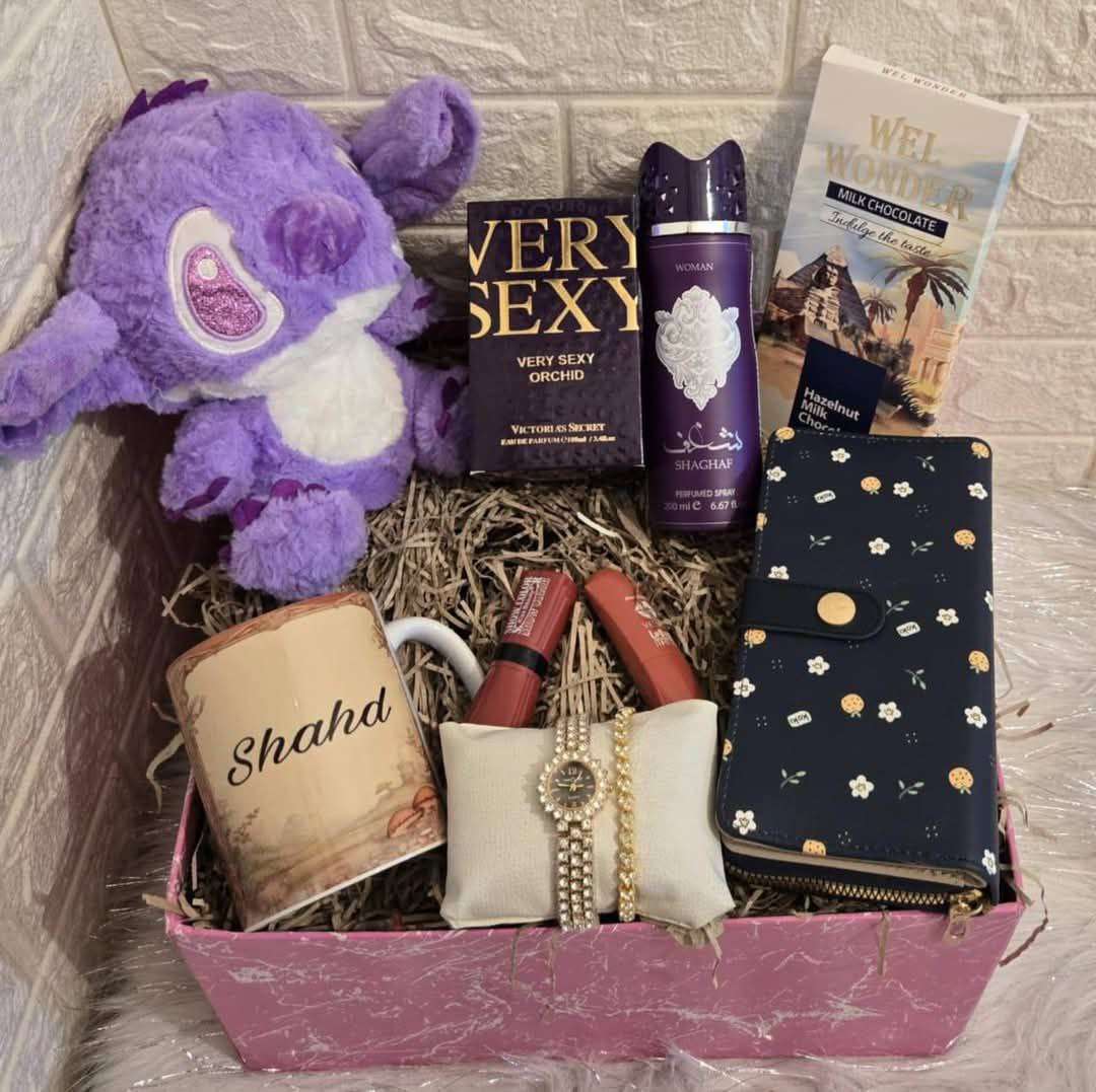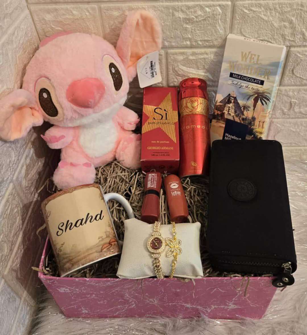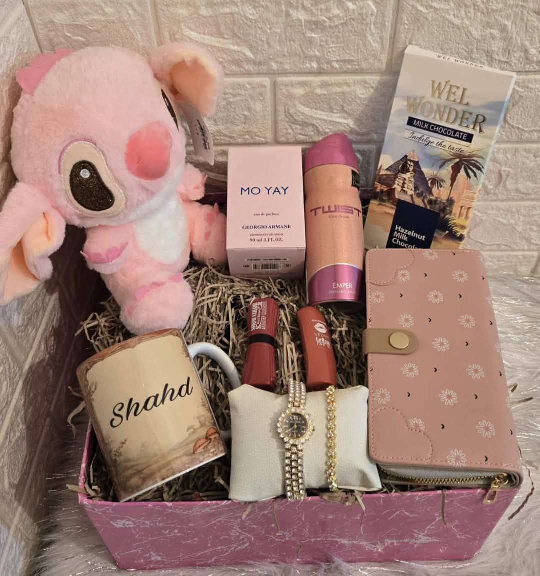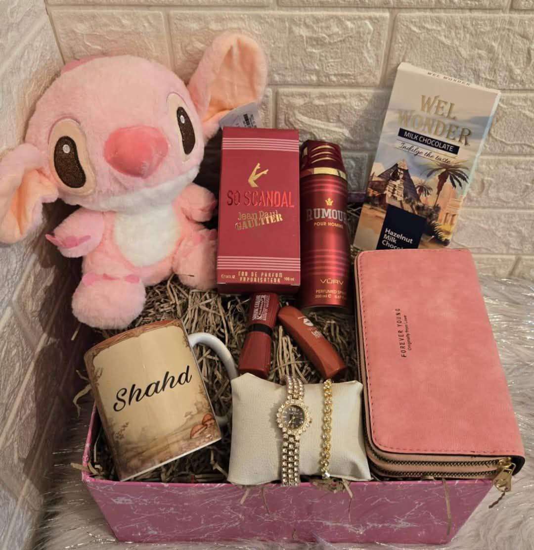بوكس حريمي 9 منتجات بسعر منتج واحد 🤗 🔸دبدوب ستيتش 🐻 🔸مج مطبوع ☺️ 🔸بيرفيوم حريمي بروائح تحفة 🥰 🔸اسبراي حريمي بروائح تحفة 🤩 🔸ساعة حريمي شيك جدا 💛 🔸بوك اشكال تحفة 😎 🔸2 قلم روج سايل 💄
