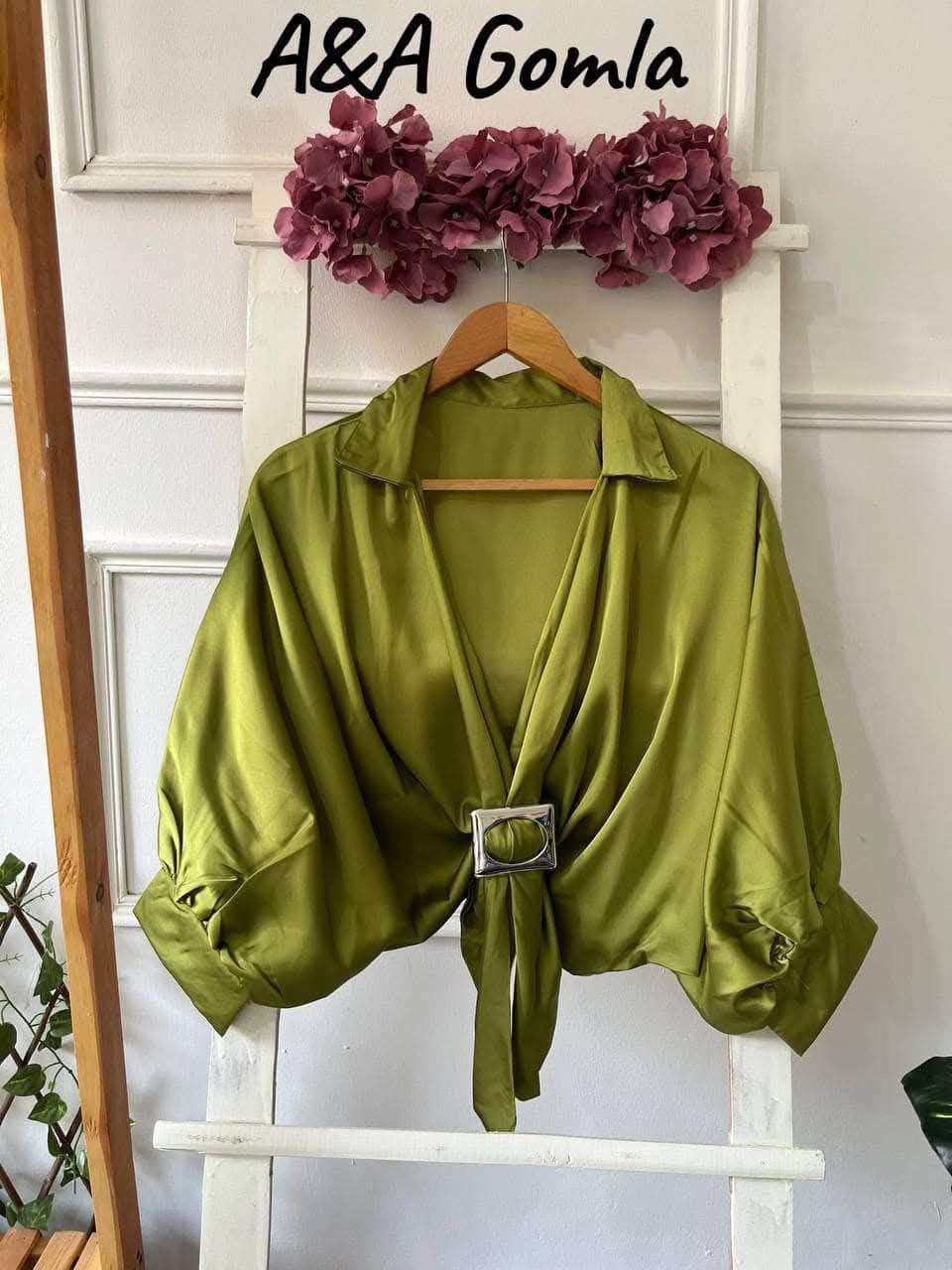 الموديل 🍃 بلوزه لف بتوكه❤️تو الخامه 😇 ستان ارماني مستورد❤️ المقاس 🤗فرى سايز من 65 إلى 85ك،،44🫡 🎁 فوووري 💰