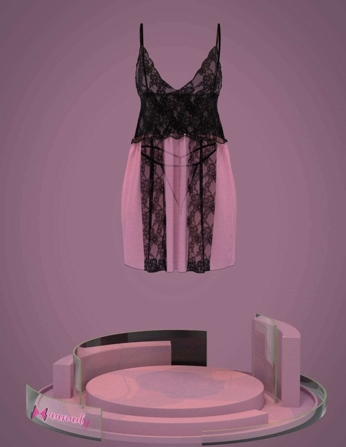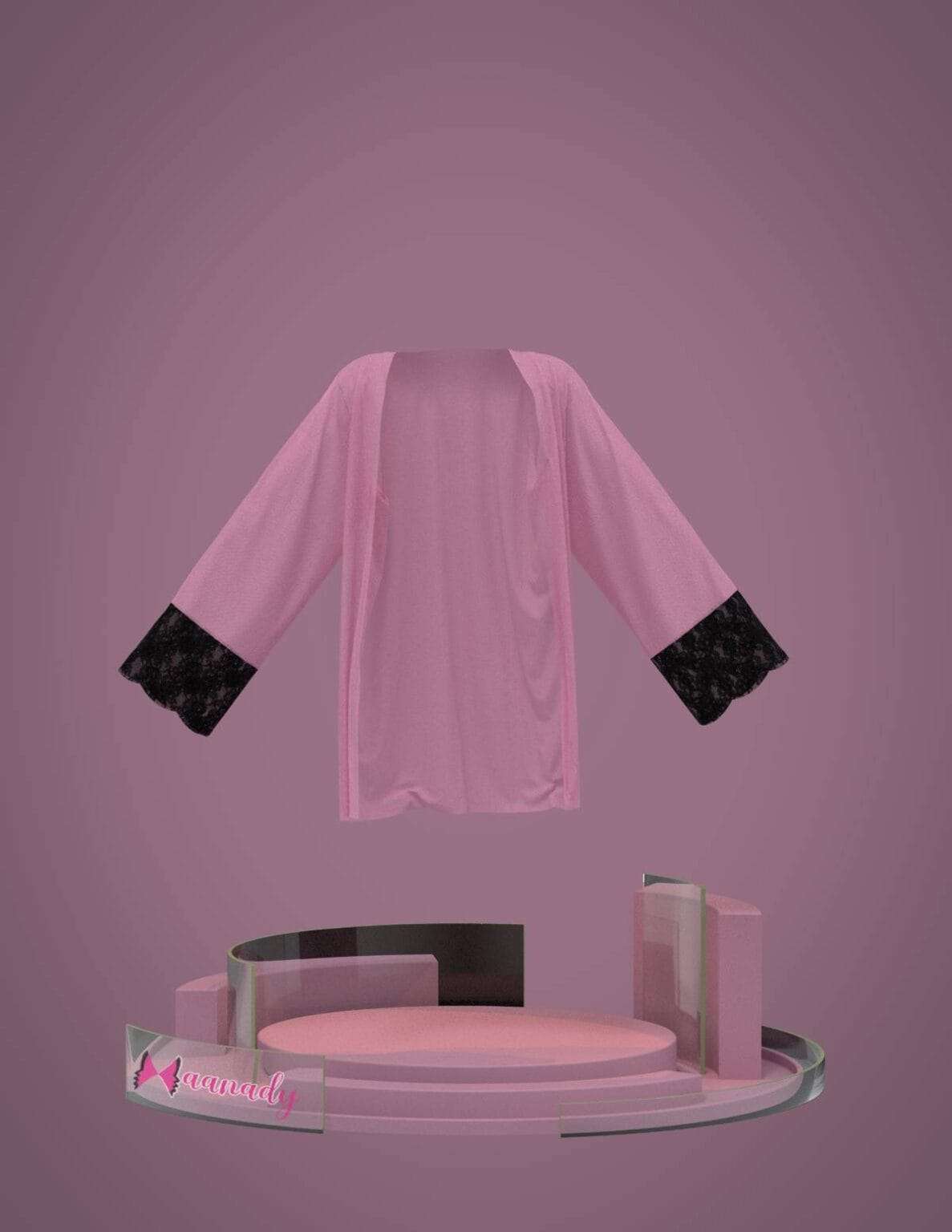 Hn 818 الخامه تل و دانتيل قميص بالروب وان سايز ل 80 كيلو الوانه روز و موف