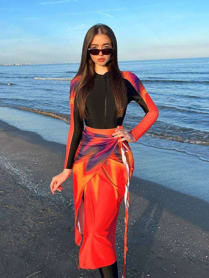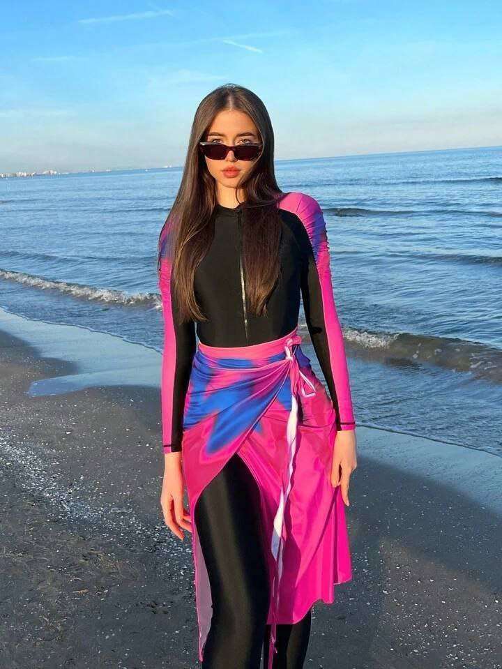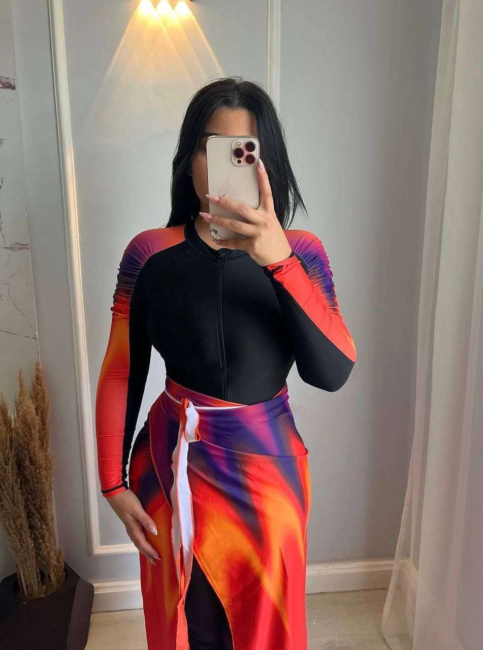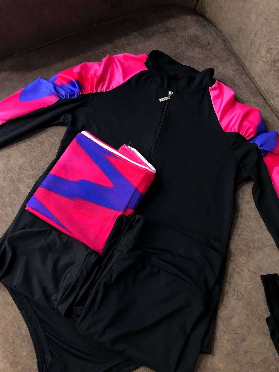 السعر 450🔥🔥🔥🔥 لمايو وجماله على الطبيعه🔥🔥🔥🔥 فوري بكمياااااااااللللت بوركيني شي ان الاصلي❤️🔥 اورنج / وازرق فوشيا ٤ قطع : تربون/كاش توب بنطلون/ كاش شيفون الخامه مستورده الالوان نفس ا