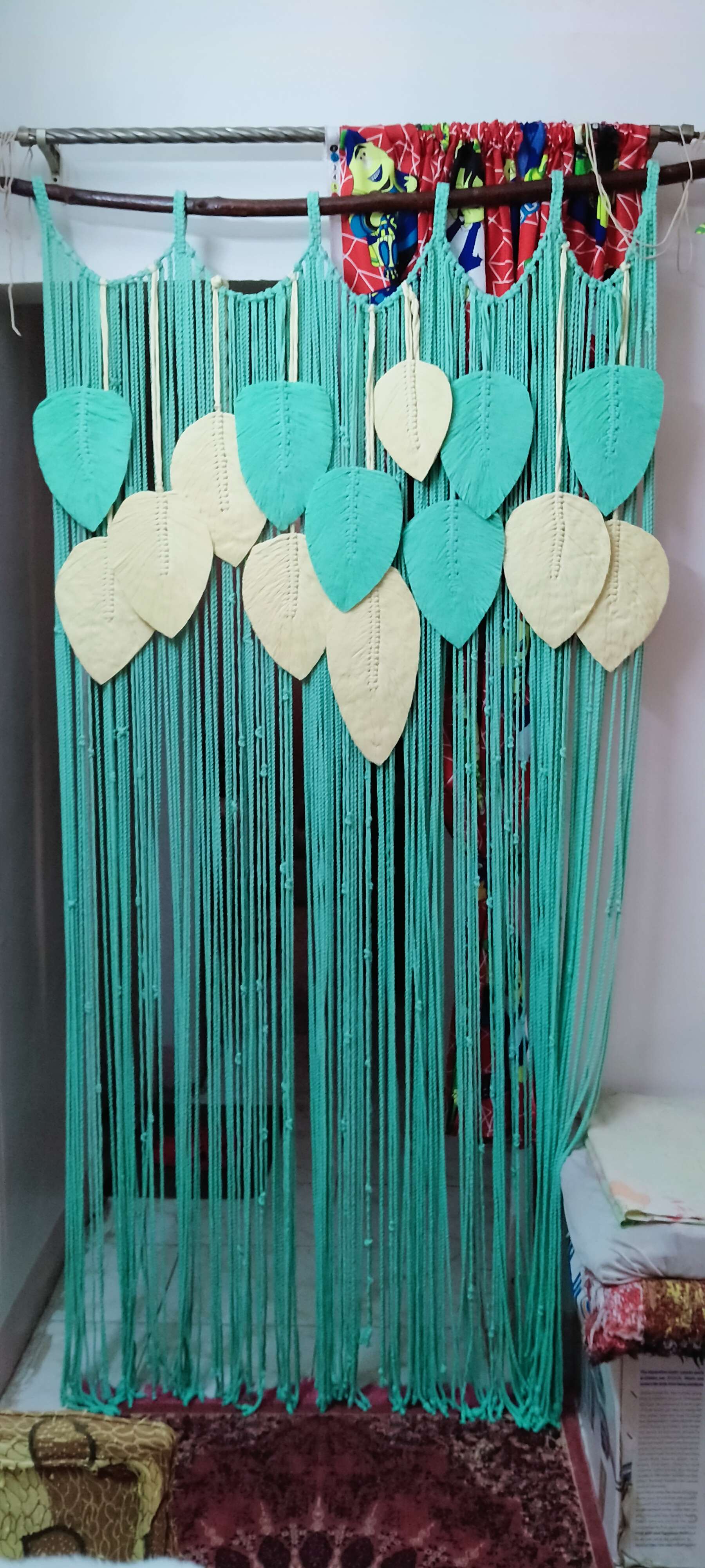 ستارة مجدولة بفن المكرمية،خيوط قطن،الوان حسب الطلب.