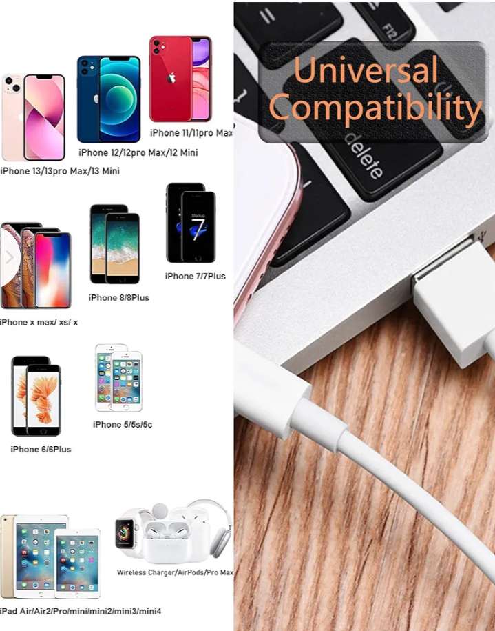 ماركت جينيريك 3.0 3.0 من 5 نجوم (2,049) سلك شاحن ايفون معتمد من ابل بطول 91 سم ايليز كابل لايتنينج للشحن السريع ومزامنة البيانات عالي السرعة متوافق مع 13 12 11 برو ماكس XS XR X 8 7 بلس 6s ايباد اي