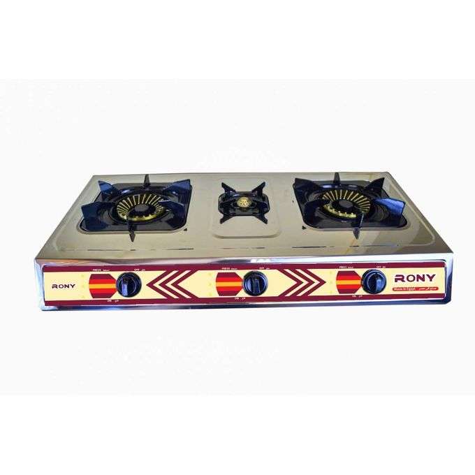 بوتجاز غاز غاز جسم من الاستاليس ستيل مقاوم للصدأ حامل اوانى مطلى بالميناء لتحمل الحراره والحمايه من التاكل ثلاث مشاعل للطهى السريع باشعال ذاتى توفر 40% من استهلاك الغاز