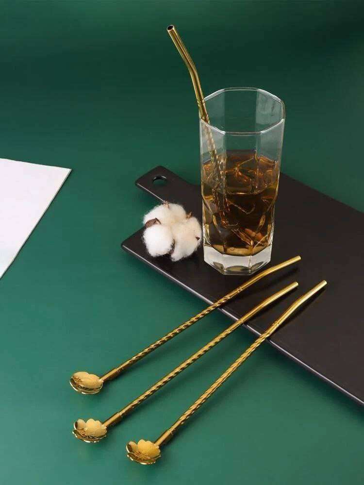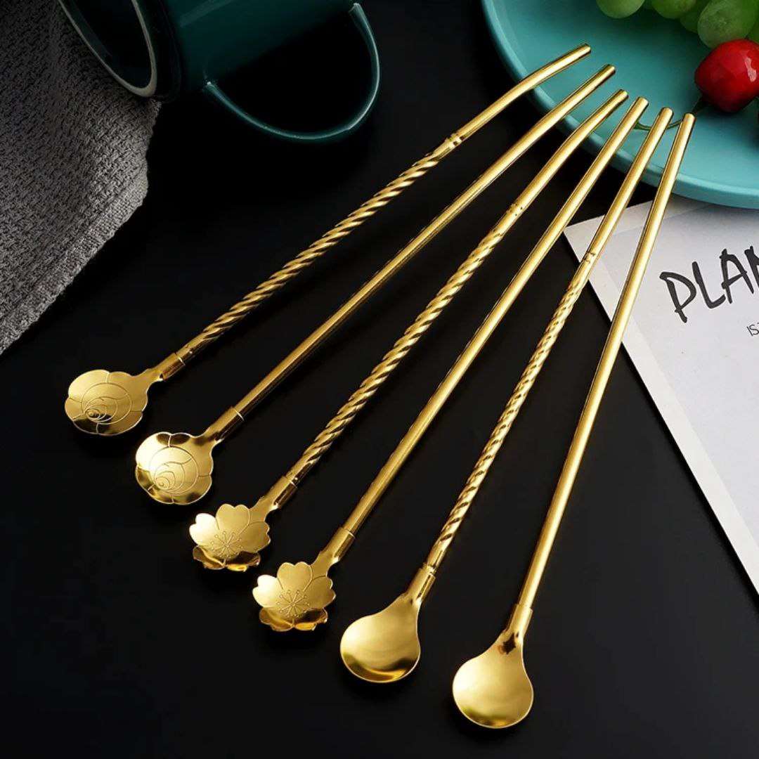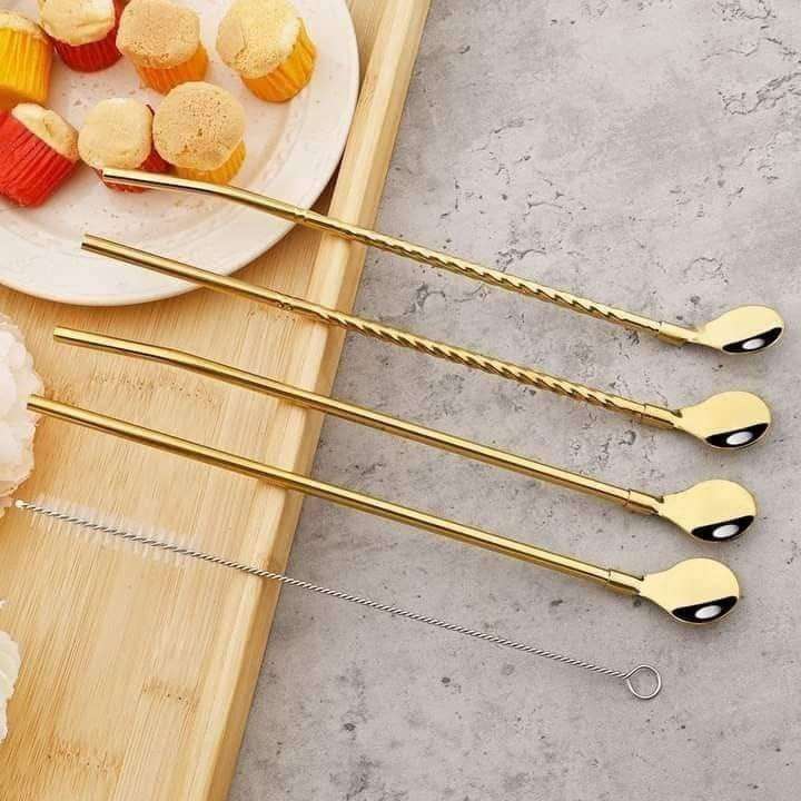 طقم معلقة كوكتيل بشاليمو 2*1 ❤️ معالق شاليموه جولد 7قطع❤️ اخر شياكه 😍😍 معلقه وشاليموا فى نفس الوقت❤️😍🥰 حلوه اوى لتقديم الفروت سلاط وجميع انواع العصاير كتير بتحتاج شاليموه ومعلقه الط