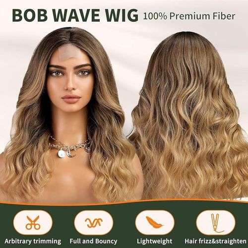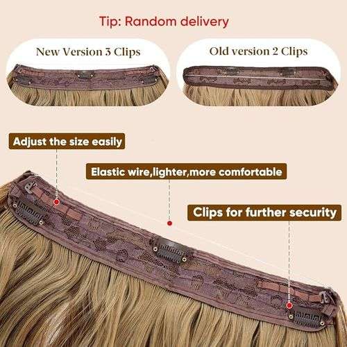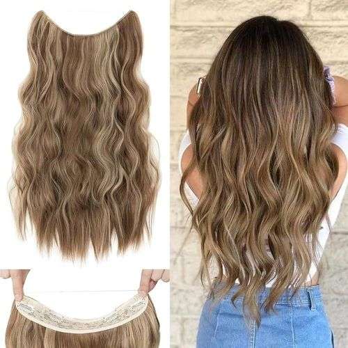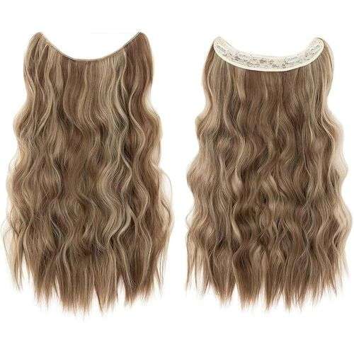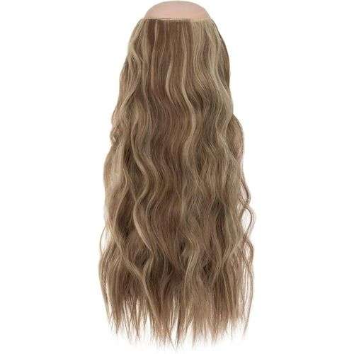 وصلة شعر طويلة مموجه باللون البني، العميق مع اشقر، تثبيت مرن ومريح