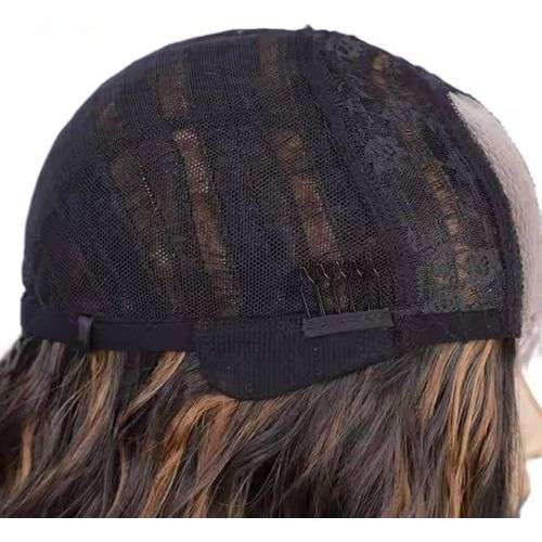 باروكة شعر قصيرة بقصة بوب مموجة بتصميم أومبري عصري، حيث يتدرج اللون من البني الداكن عند الجذور إلى درجات أفتح. تمنح هذه الباروكة مظهرًا طبيعيًا وكثيفًا مع لمسة عصرية، وهي مثالية لمن تبحث عن تسري