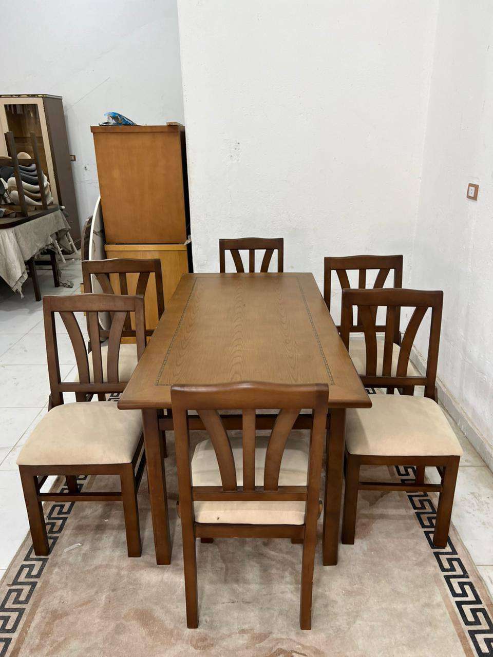 سفره خشب زان 6كراسي قماش هامر شغل محترم عاين قبل الاستلام الرجول زان والقرص ث ابلكاش
