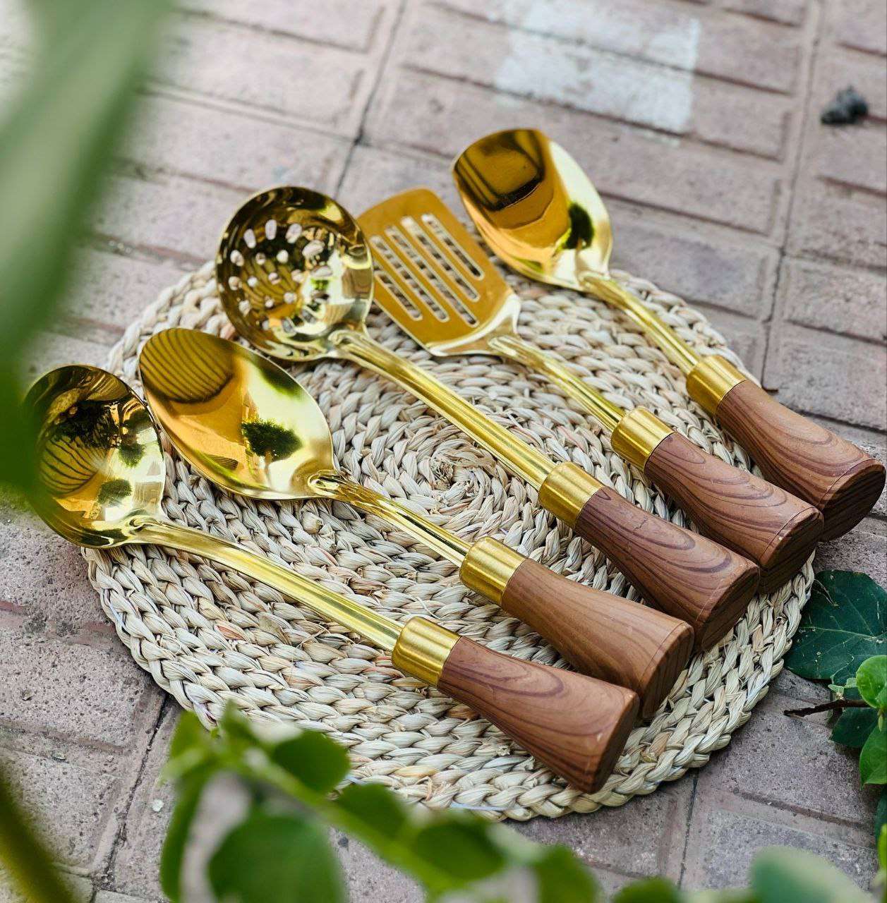 كبشة توزيع للسفرة استانلس بالطلاء الذهبي المميز