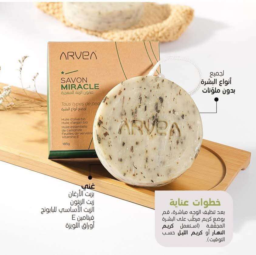 🧼✨ الصابون المعجزة من ARVEA ✨🧼 لو نفسك في بشرة نضيفة وناعمة ومن غير تعب... يبقى لازم تجرّبي "الصابون المعجزة"! 🌿 💚 غني بزيوت طبيعية زي: زيت الأرغان زيت الزيتون زيت البابونج فيتامين