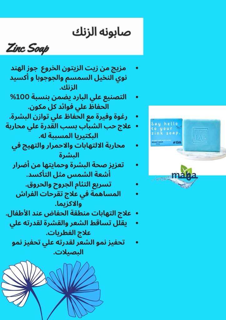 صابون الزنك يحتوي على خصائص مفيدة للبشرة، من أبرزها: 1. مكافحة حب الشباب: يحتوي الزنك على خصائص مضادة للبكتيريا تساعد في تقليل البكتيريا المسببة لحب الشباب، ويقلل من إفراز الزهم (الزيوت الطبيعية) م