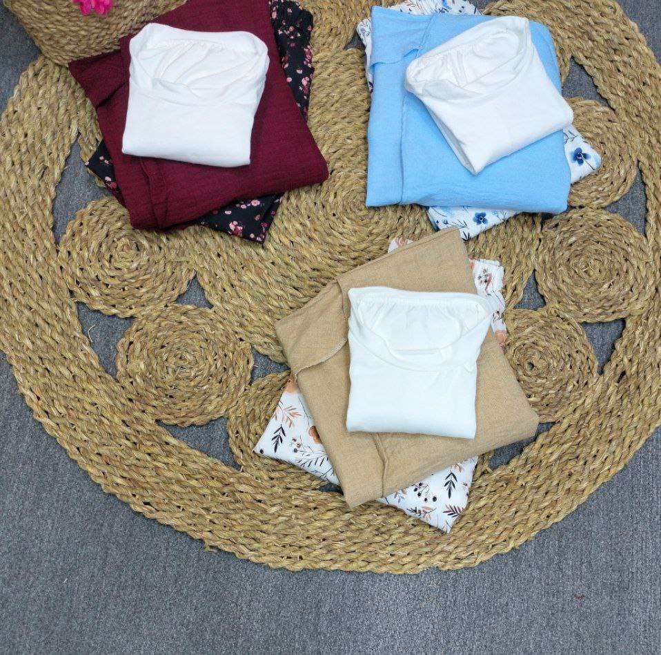 الموديل🌧️🌧️طقم 3قطع ترند الموسم تحفه❤️ الخامه🌧️🌧️كتان في سوفت بضي قطن مستورد تركي المقاس🌧️🌧️وان سايز من 65ك ل 85ك كود056