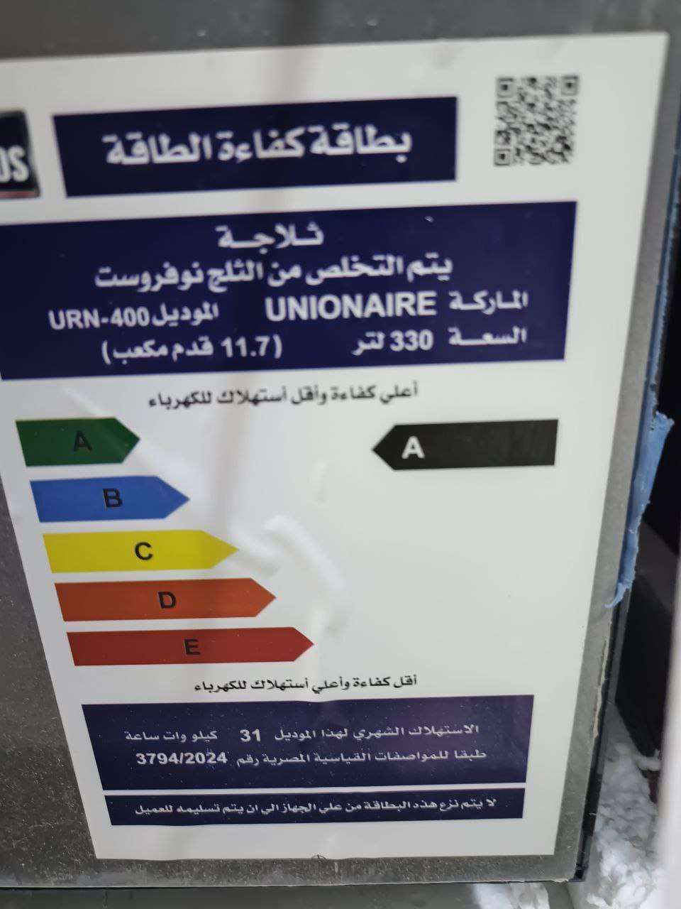 تلاجة يونيون اير موديل سوبر تيك 380 RD١٢,٥٠٠ج.م٩٠