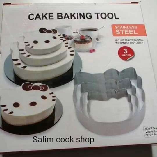 قالب كيك شكل كيتي 3 قطع🐱🐱🐱 ٣ احجام هم 20*4.5cm 15*4.5cm 10*4.5cm لعمل احجام مختلفه من الكيك او لعمل كيك🧁 ادوار اختيار مفضل للكيك و التورته 🎂 التشيز كيك و جميع انواع الحلويات🥮 مصنوع