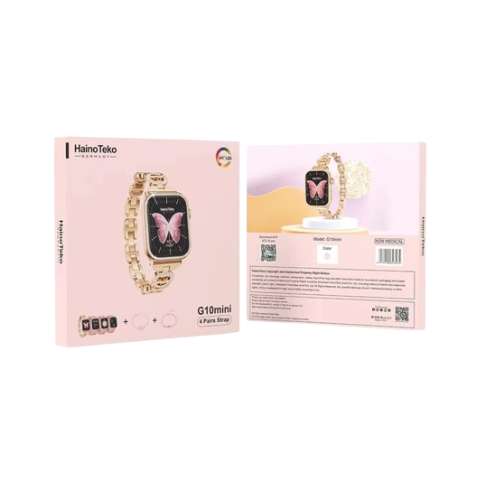 1- مواصفات ثانوية لساعة Haino Teko G10 Mini ضمان 3 أشهر ضمان ارجاع مجاني 14 يوم تدعم اللغة العربية الموديل : Haino Teko G10 Mini علامة تجارية : HAINO TEKO لون : وردي نوع : حول المعصم وزن