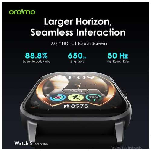 ساعة اورايمو Watch 5 OSW-805 – شاشة 2.01 بوصة، مقاومة للخدش