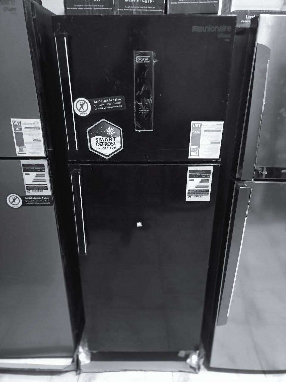 🖤تلاجة يونيون اير موديل سوبر تيك فرز تاني بضمان سنه من الشركة لون اسود موديل 320 = 310 لتر شاشة ديچتال خاصية الديفروست 2 رف زجاج أرفف زجاج تتحمل الضغط 🤝