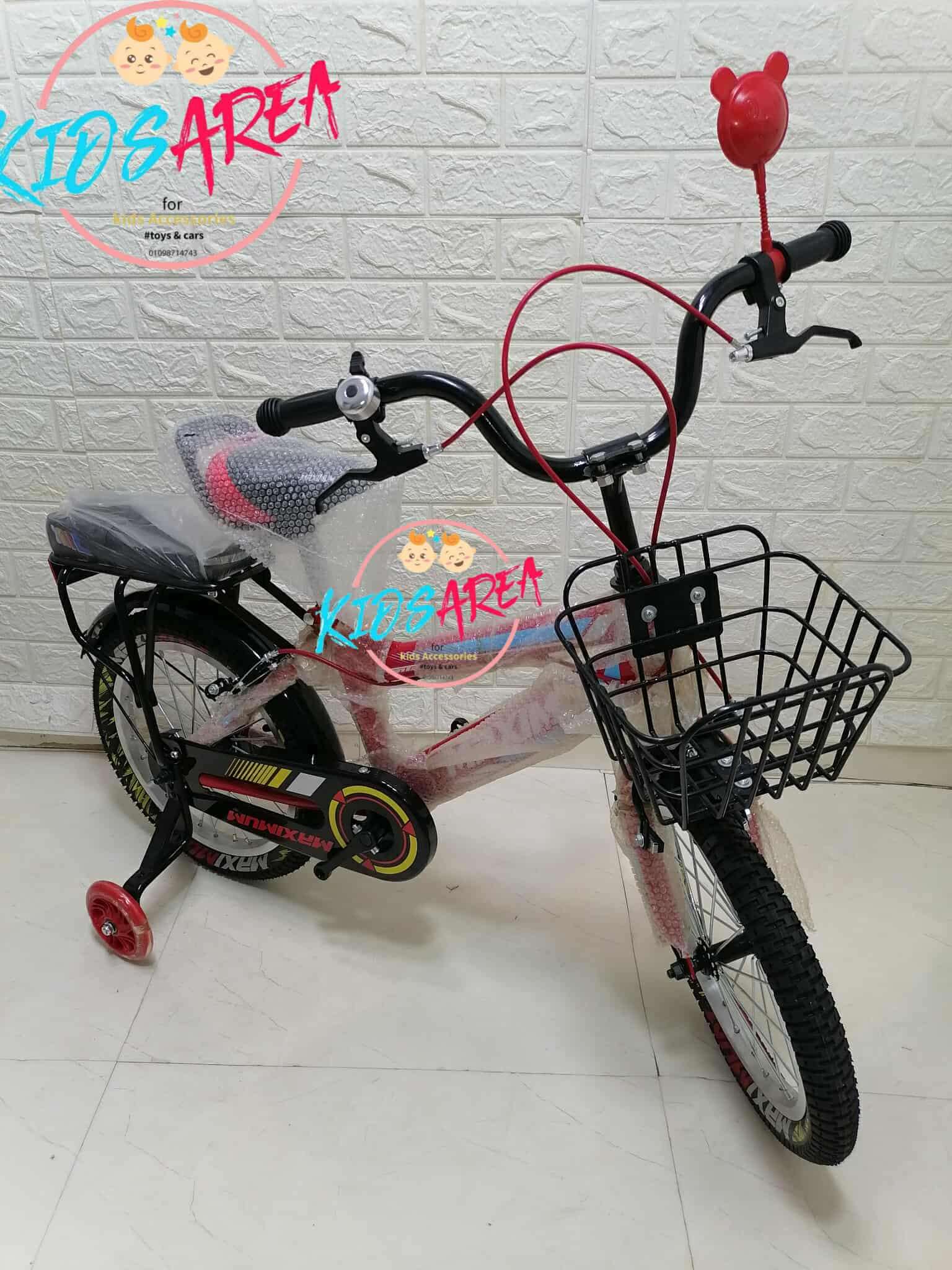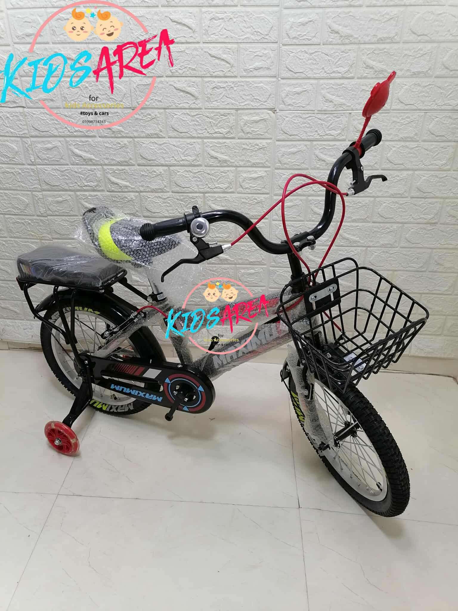 عجلة شيك جدا عملية جدا كدر متين يتحمل شقاوة الاولاد الوان جذابة كرسي انسيابي طبي و سهل الضبط كرسي خلفي متنجد سلة كبيرة غطاء جنزير كامل معدن سندات بتنور جرس