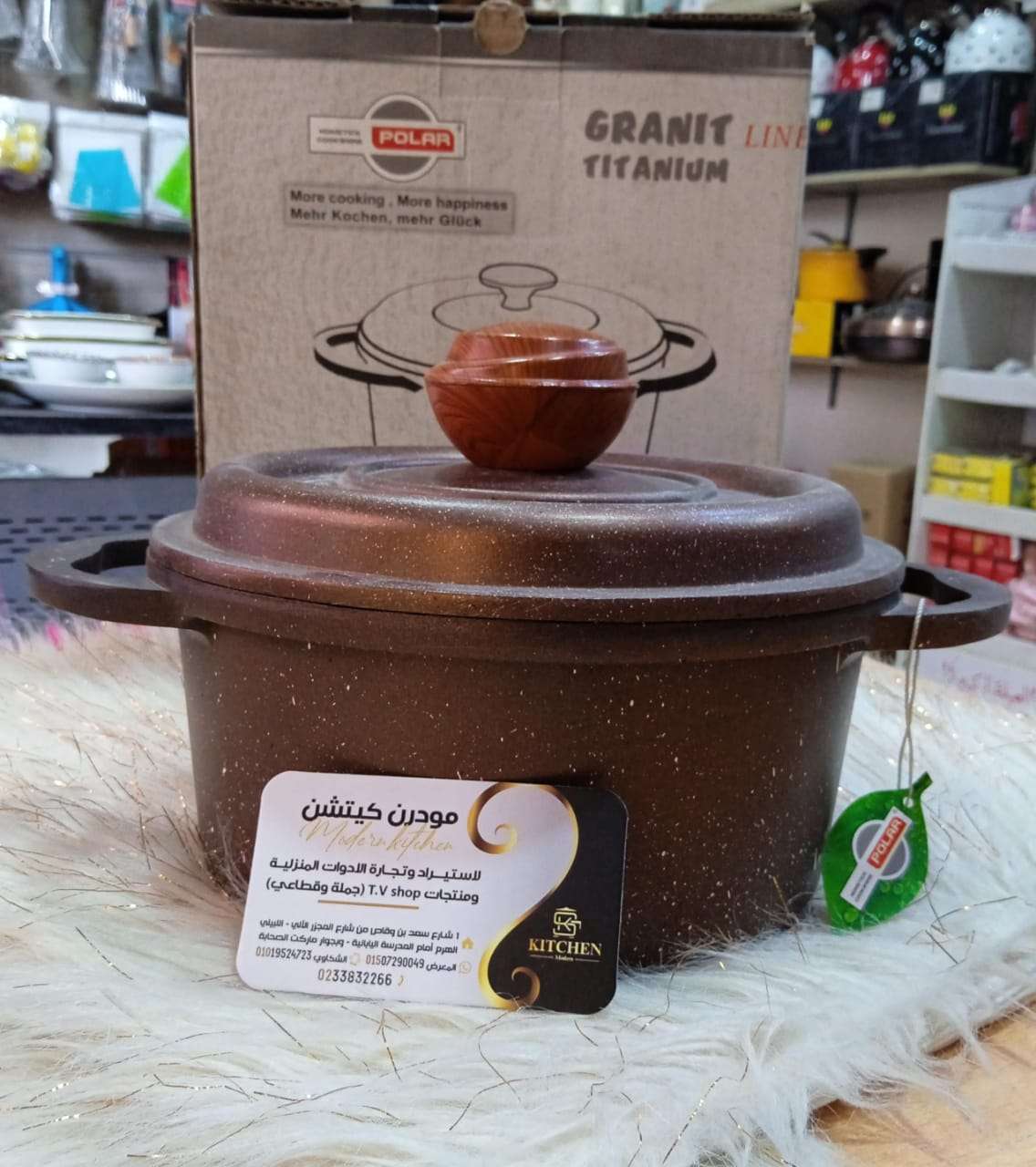 حلة جرانيت أصلية من براند بولر الألماني 🇩🇪 ✅ خامة تقيلة ومحترمة 👌 ✅ تنفع للطبخ على البوتاجاز وكمان تدخل الفرن عادي جدًا 🫕🔥 ✅ المقاس: 20سم – مناسبة للطبخ اليومي بكل راحة 💯 الحلة عملية وجودتها عا