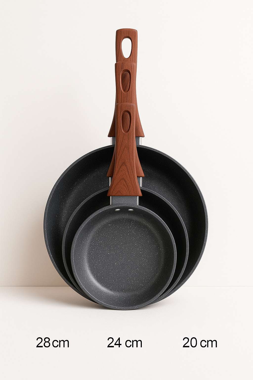 💥 طقم طاسات شكل شيك وأداء ممتاز 💥 3 مقاسات أساسيين في كل مطبخ: 🍳 28 سم – 24 سم – 20 سم ✅ جرانيت ناعم وسهل التنضيف ✅ مناسب للطبخ اليومي ✅ تصميم أنيق ومقابض مريحة ✅ ما بيلزقش – ويوفرلك وقتك