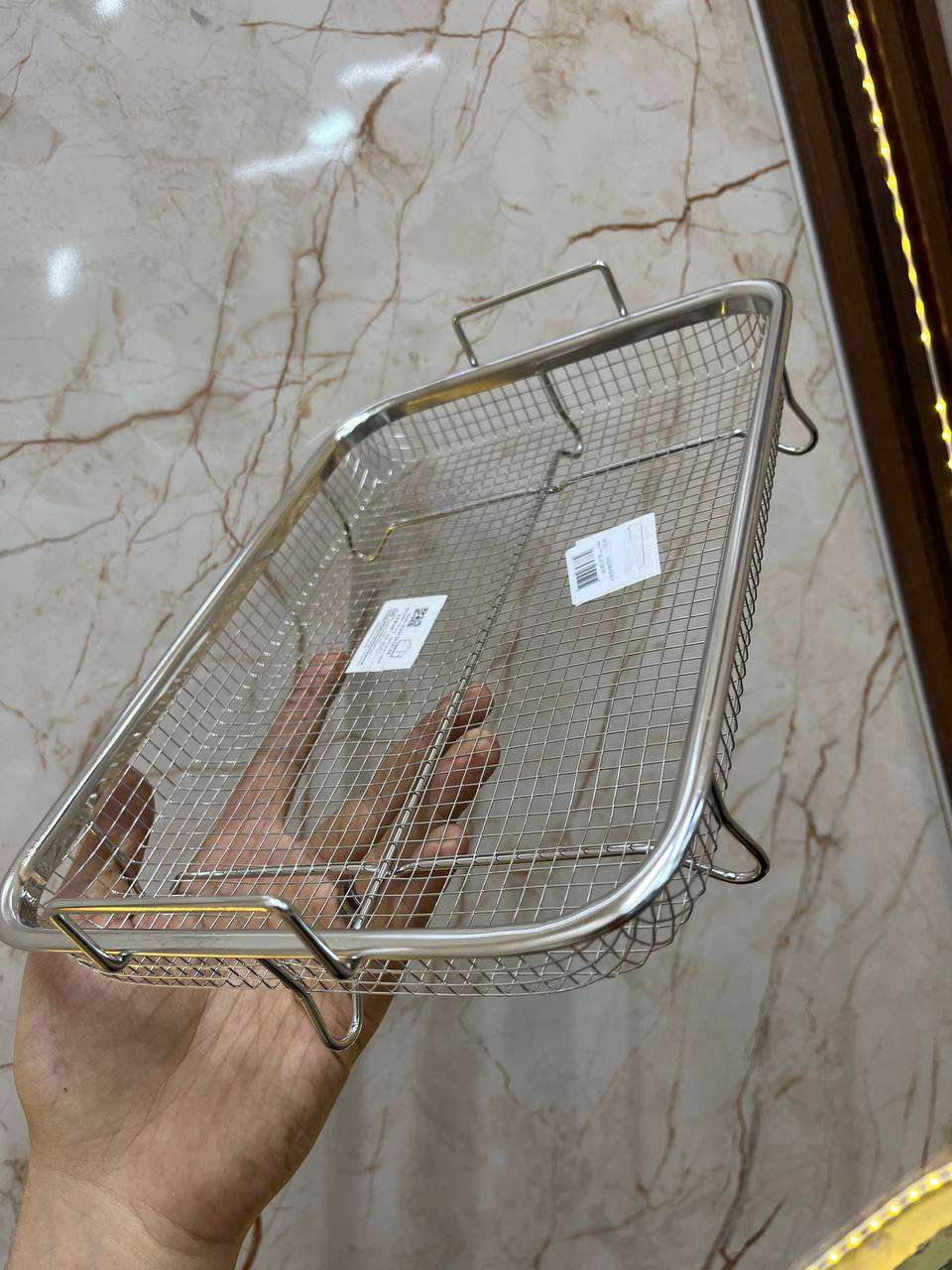 شبكه التحمير الاستانلس ❤️😍 ليها اكتير من استخداام ❤️ ممكن تستخدميها في الفرن تحطيها علي اي صينيه من عندك و تعملي فيها اكل صحي بدون زيت دي البطاطس و الفراخ ❤️🤭 او صفايه خضار او فاكهه بعد الغسي