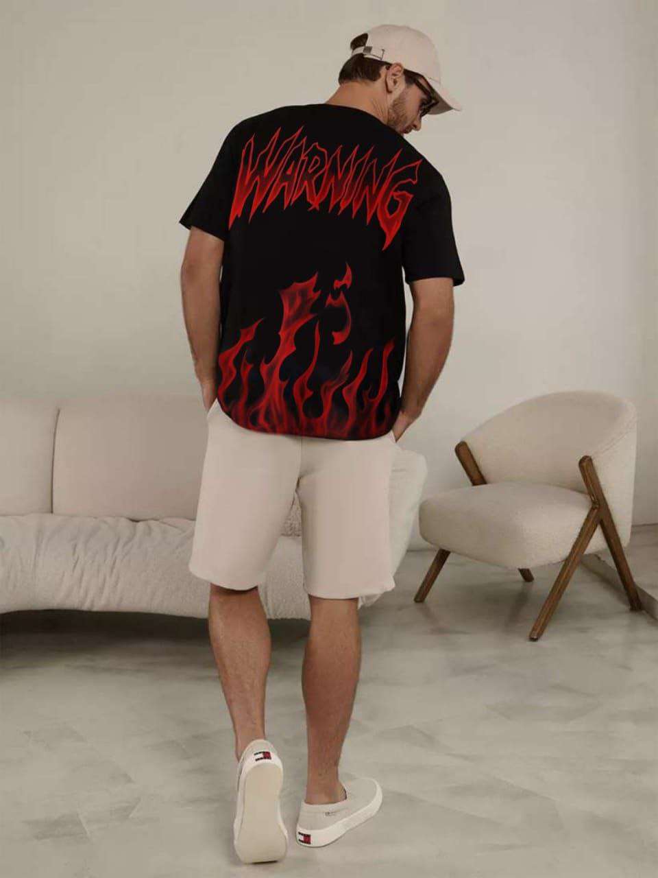 تيشيرت النار إنذار لأي حد حواليك! 😈 ستايل مولّع حرفياً بالنار 🔥 لون أسود ملوكي مع طبعة نارية حمراء 💥 هتخطف الأنظار أول ما تنزل بيه 😎💣 لو إنت من الناس اللي بتحب تبان مختلف ومش