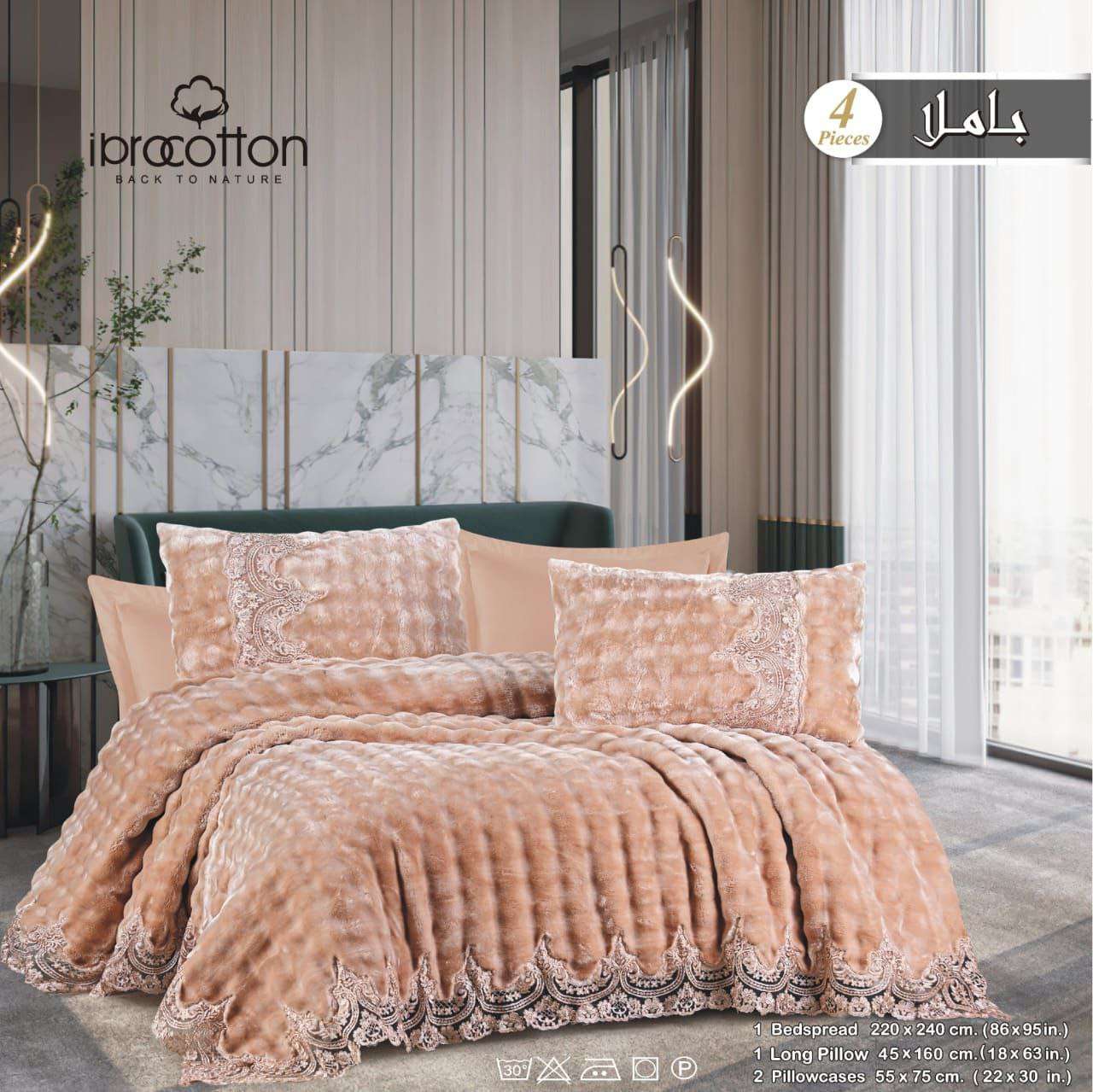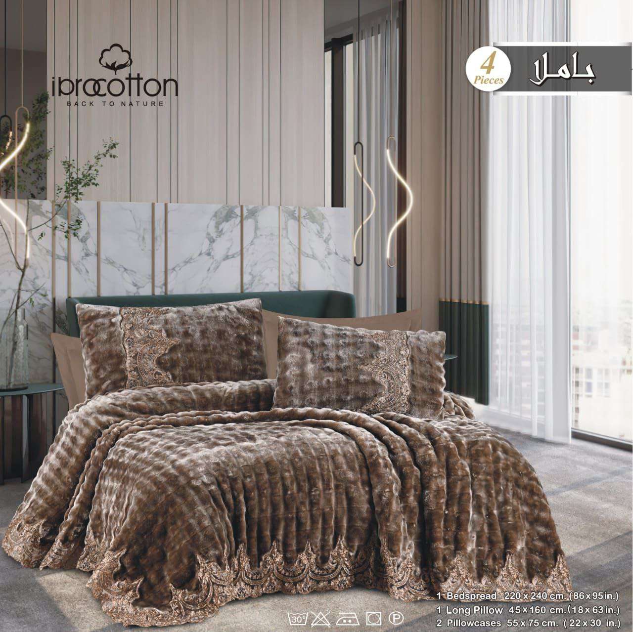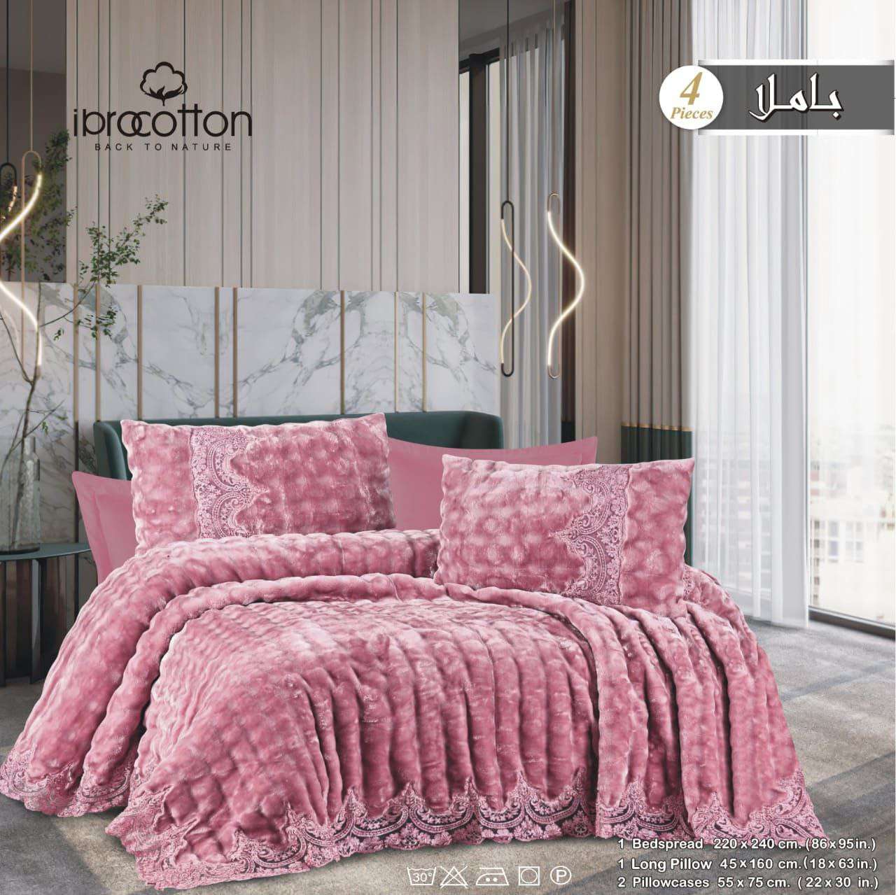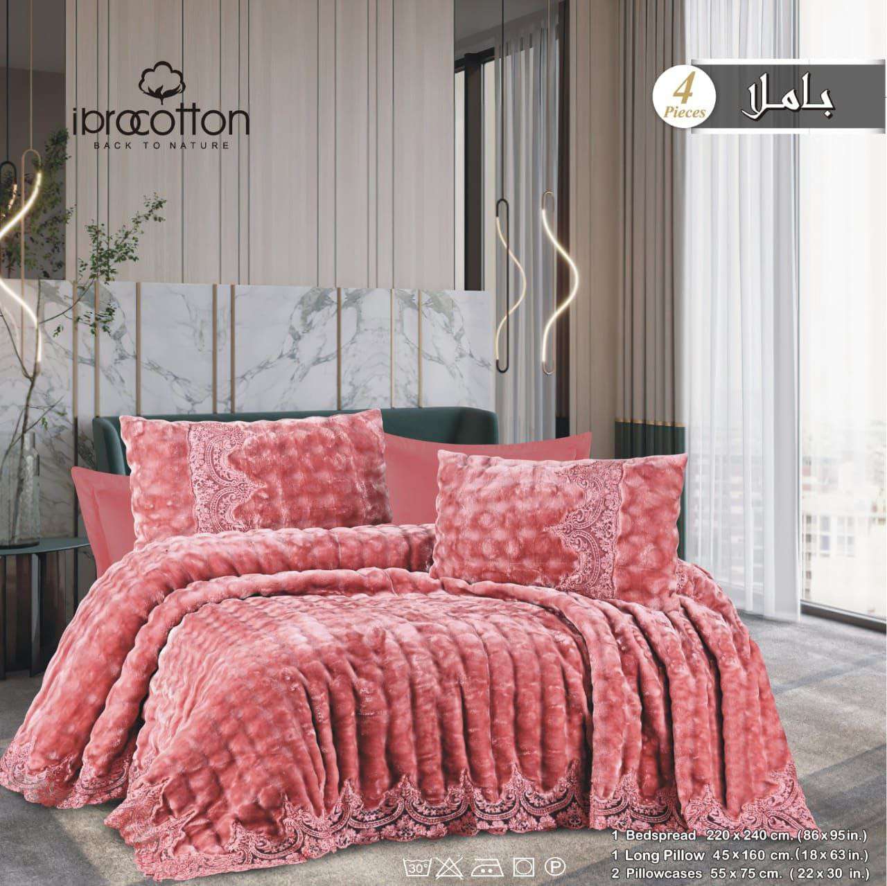 🌼 طقم مفرش قطيفة ايبرو باملا 4 قطع كبير 1 مفرش 240×220 2 خدادية 55×75 1 مخدة 45×160 السعر 2280 ج
