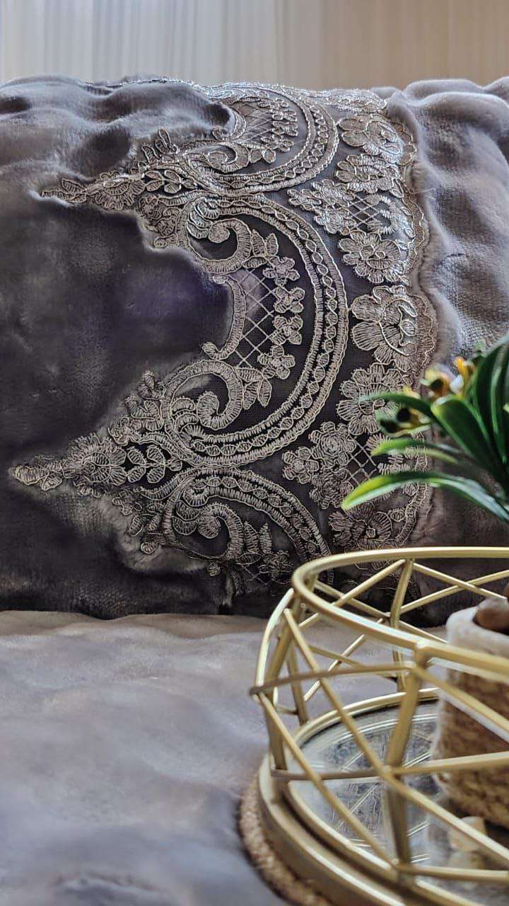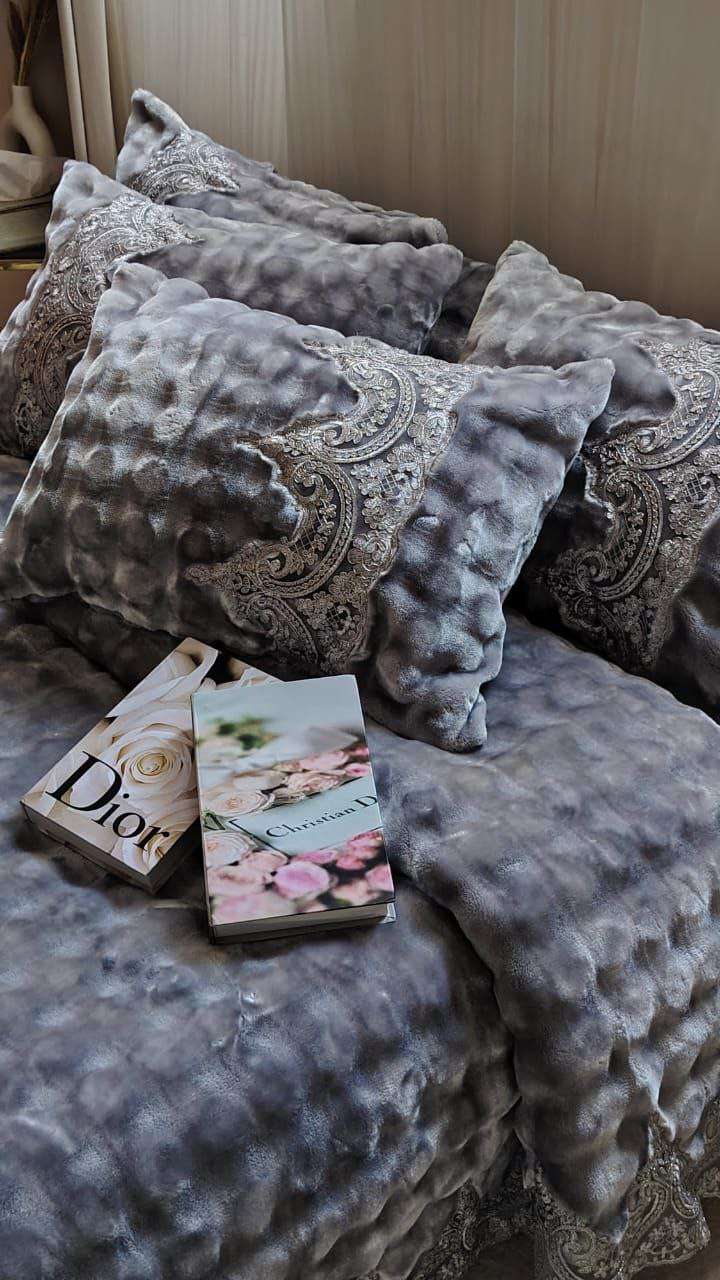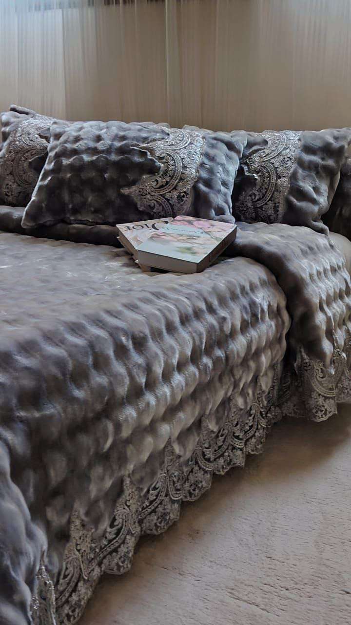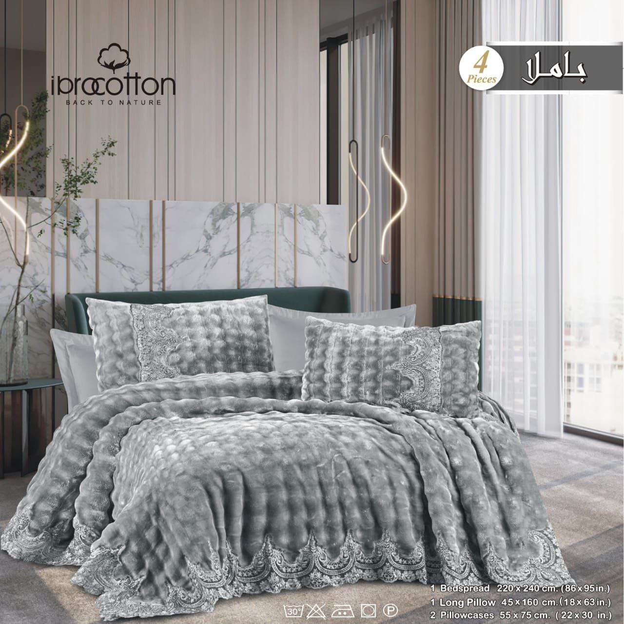 🌼 طقم مفرش قطيفة ايبرو باملا 4 قطع كبير 1 مفرش 240×220 2 خدادية 55×75 1 مخدة 45×160 السعر 2280 ج