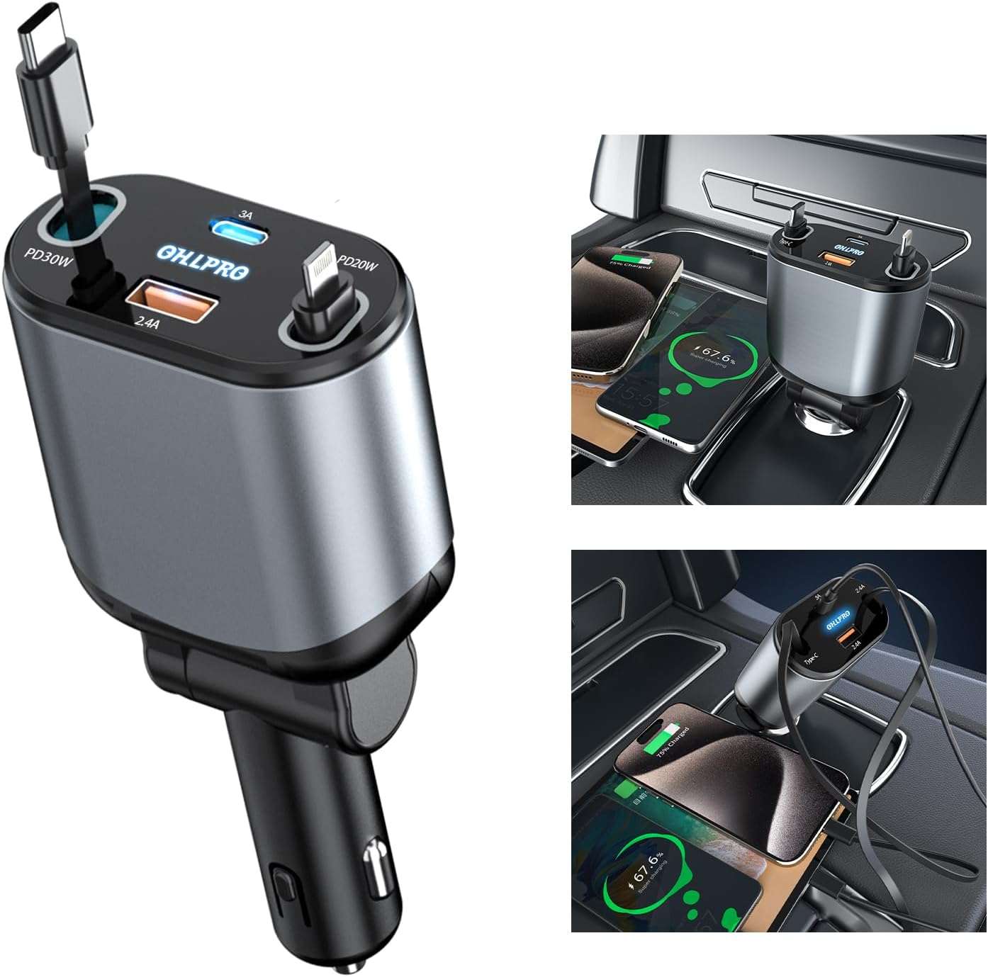 علشان دايمًا بتكون في الطريق ومحتاج شاحن عملي، سريع، وأنيق.. جبنالك شاحن السيارة الترند 4 في 1 اللي هيشحنلك موبايلك وإنت مطمن، وبدون كركبة كابلات! 💥🚗 – شاحن واحد يغنيك عن أي شاحن تاني! ⚡🔌 💡 ممي