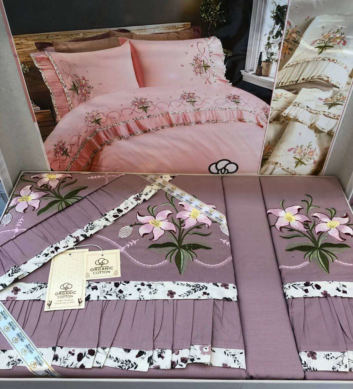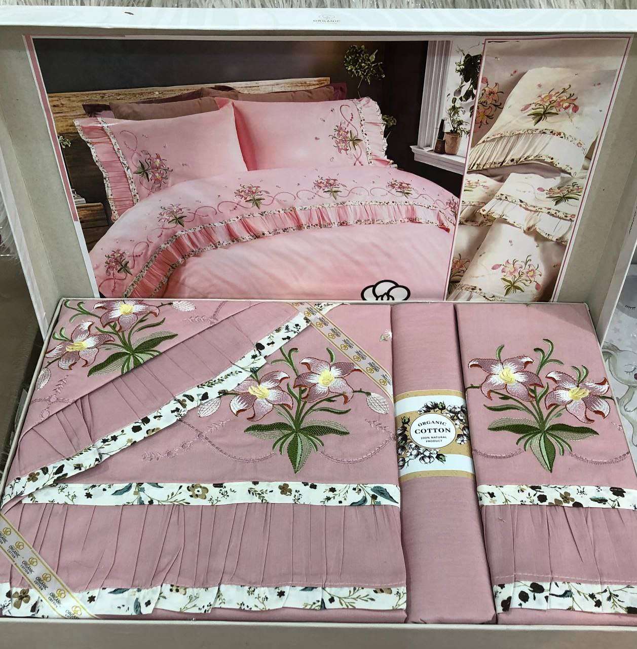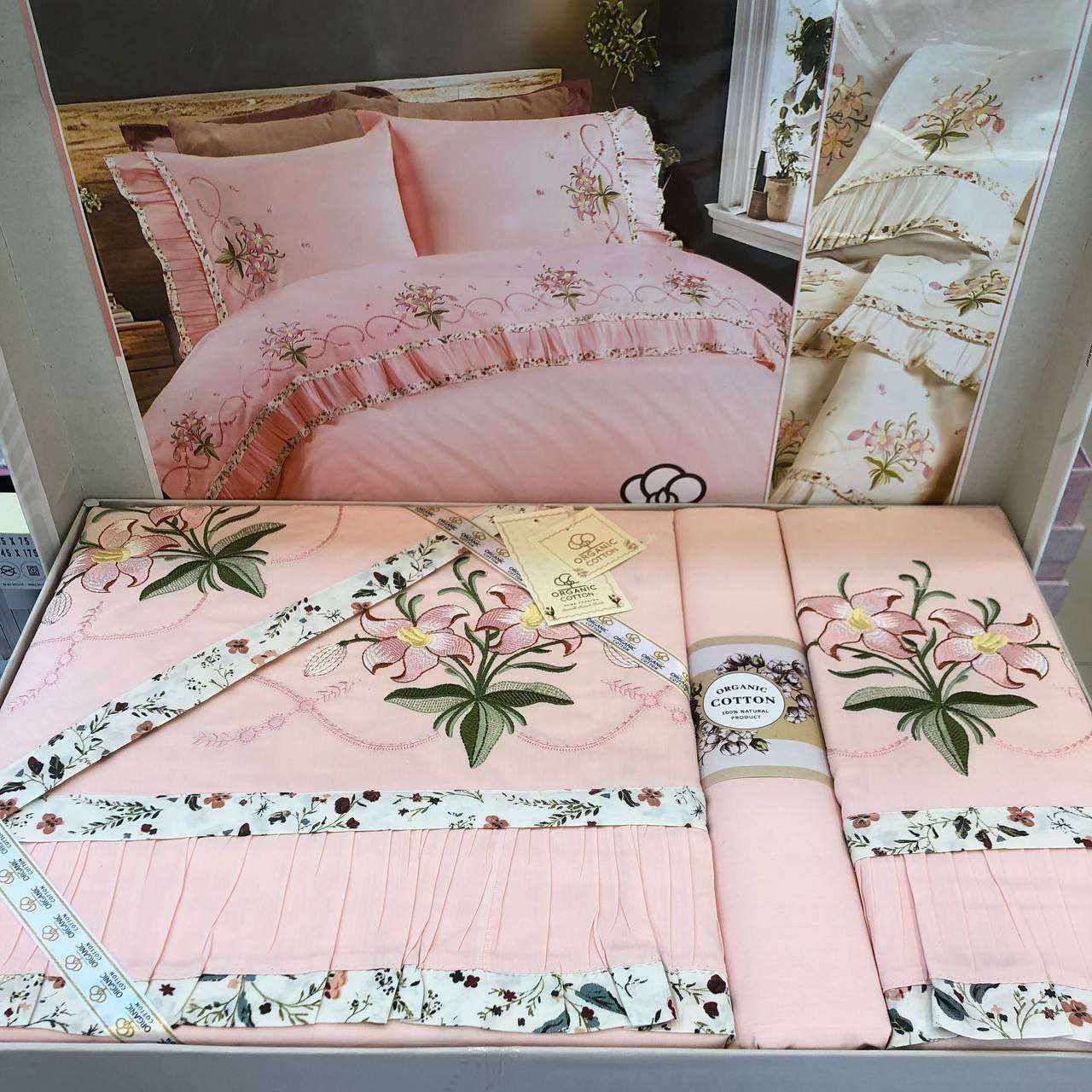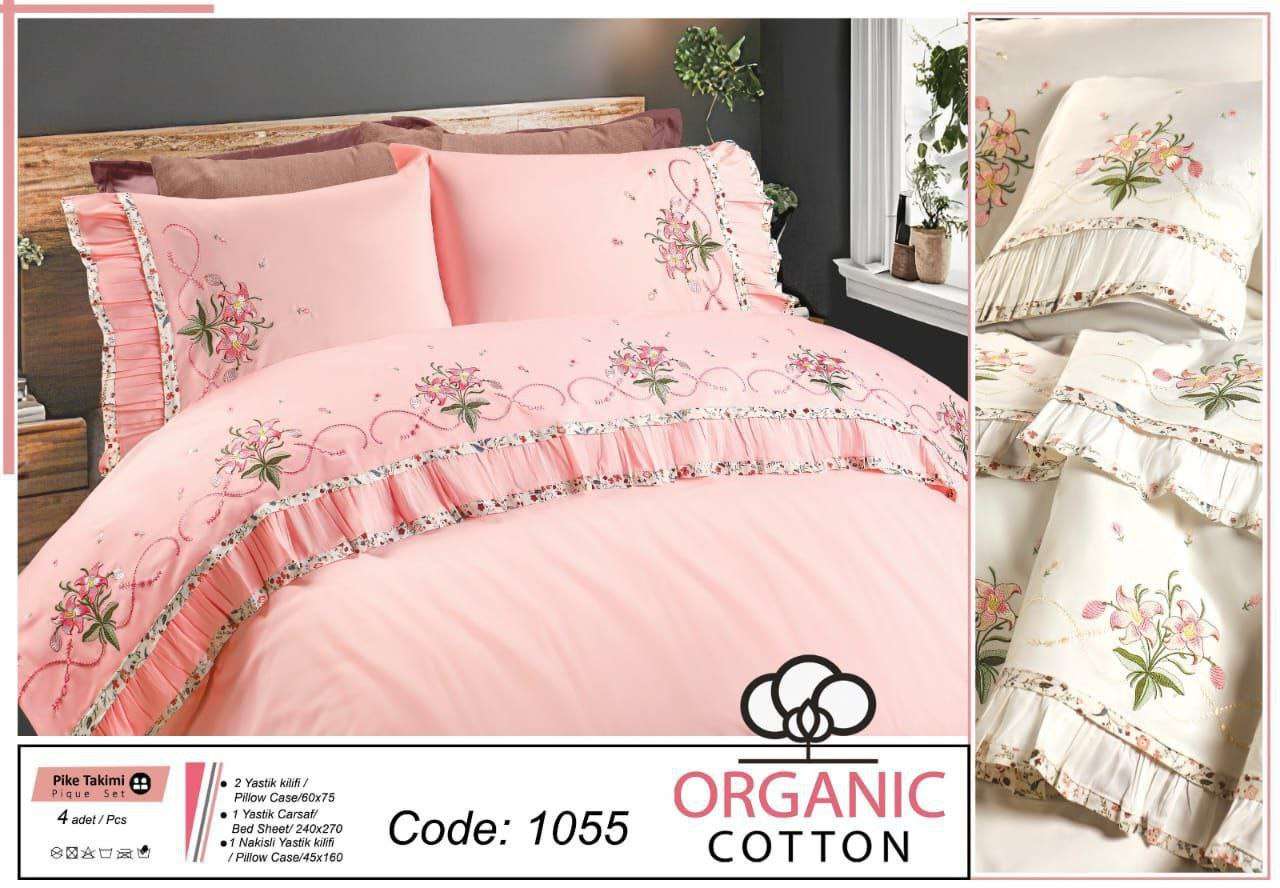 لو بتدوري على لمسة ناعمة تخلّي أوضتك تحفة وتضيف أجواء بهجة ورقي... طقم سرير أورجانك كود 1055 هو اختيار العرائس اللي قلبهم دافي وذوقهم عالي! 🌸✨ ٤ قطع قطن صافي 100% برسومات ورد مطرزة وألوان بينك