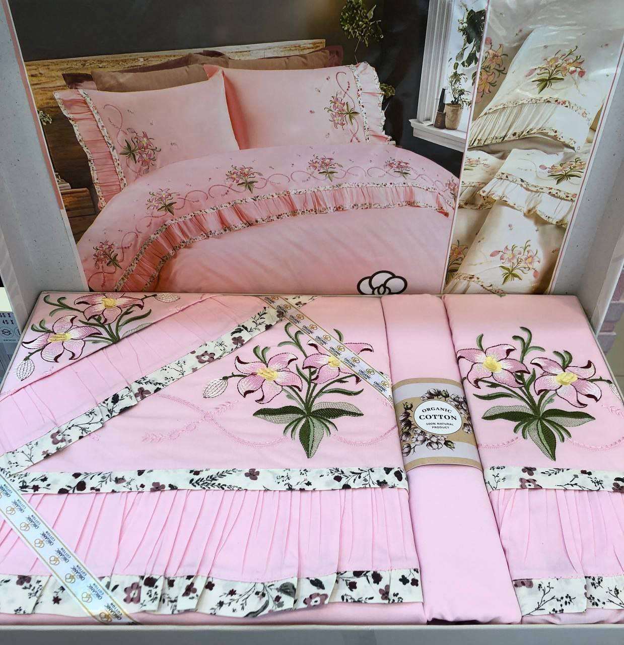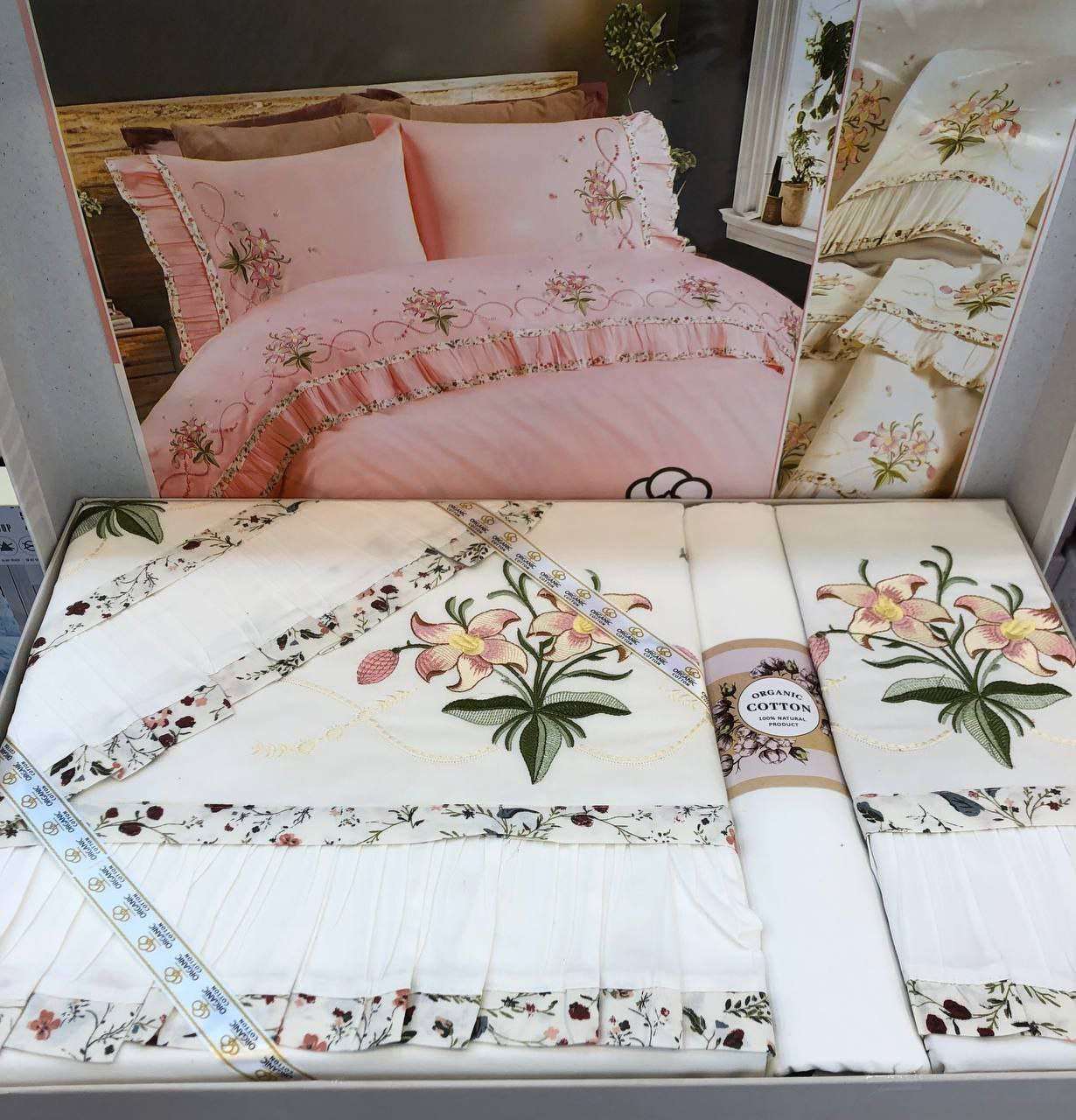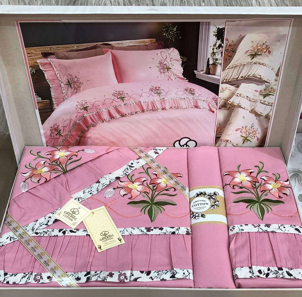 لو بتدوري على لمسة ناعمة تخلّي أوضتك تحفة وتضيف أجواء بهجة ورقي... طقم سرير أورجانك كود 1055 هو اختيار العرائس اللي قلبهم دافي وذوقهم عالي! 🌸✨ ٤ قطع قطن صافي 100% برسومات ورد مطرزة وألوان بينك
