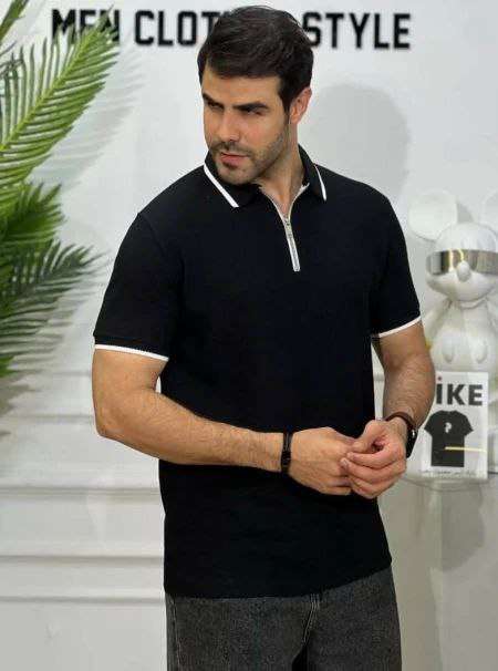 تيشيرت رجالي خامة بسكوته مستوردة • خامة ناعمة ومريحة جدًا، خامة بسكوته مستوردة بجودة عالية • تصميم شيك بسوستة أمامية وعند الياقة خطين بلون أبيض/ ازرق لستايل كاجوال مميز • متوفر بالألوان: أسود –