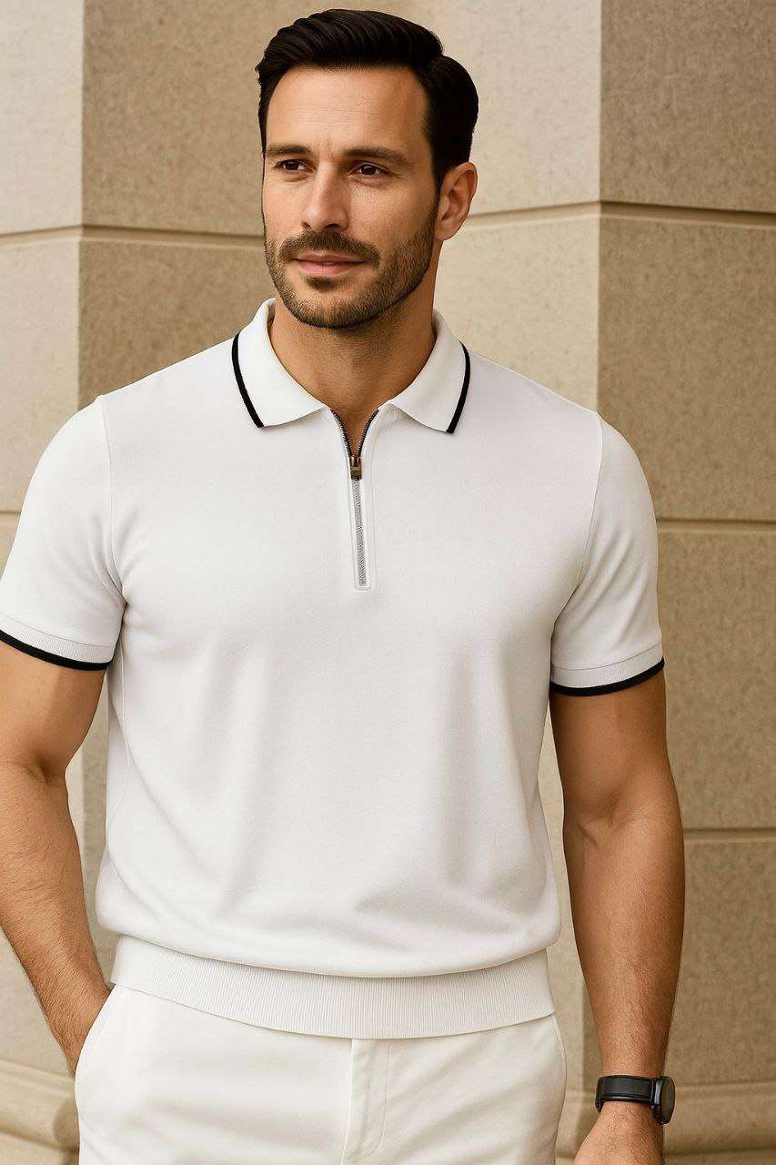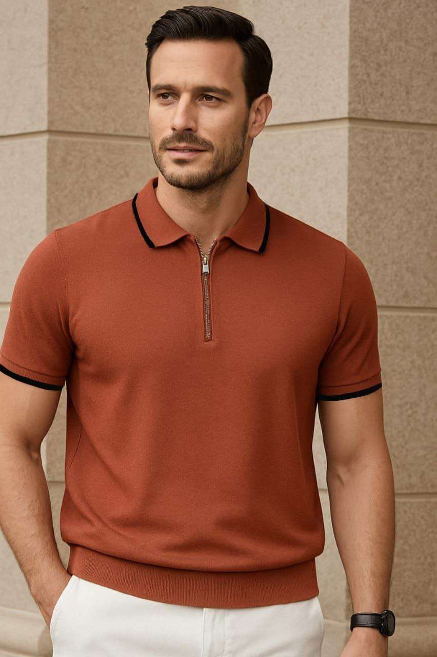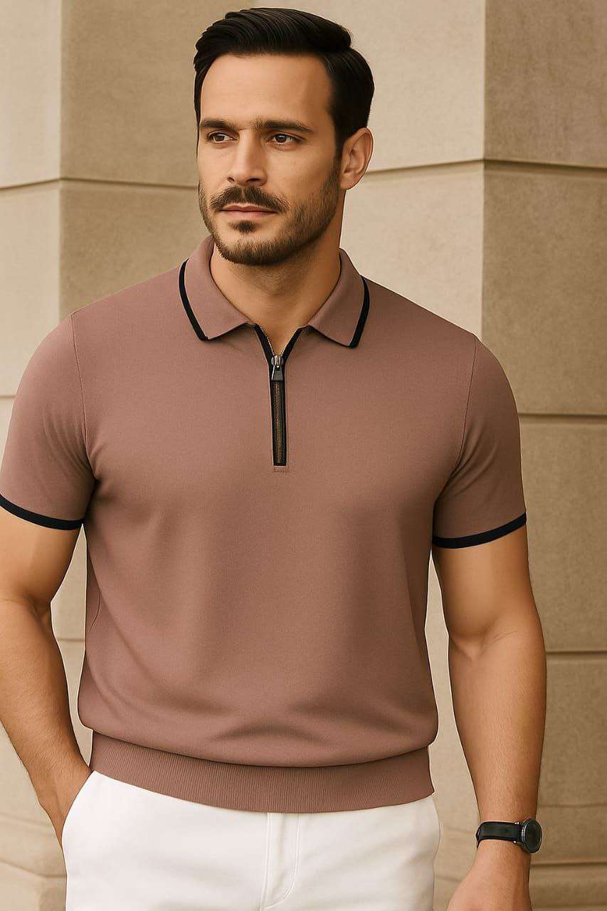 لو بتدور على حاجة تديك شكل أنيق وتحافظ على راحتك طول اليوم 👌 جبنالك التيشيرت اللي معمول بخامة عجينة ناعمة ومطاطية 💯 ملمس ناعم، وجودة خرافية ✨ سوستة خفيفة بتدي شكل كلاسيك مودرن 🔥 ينفع تلبسه في ش