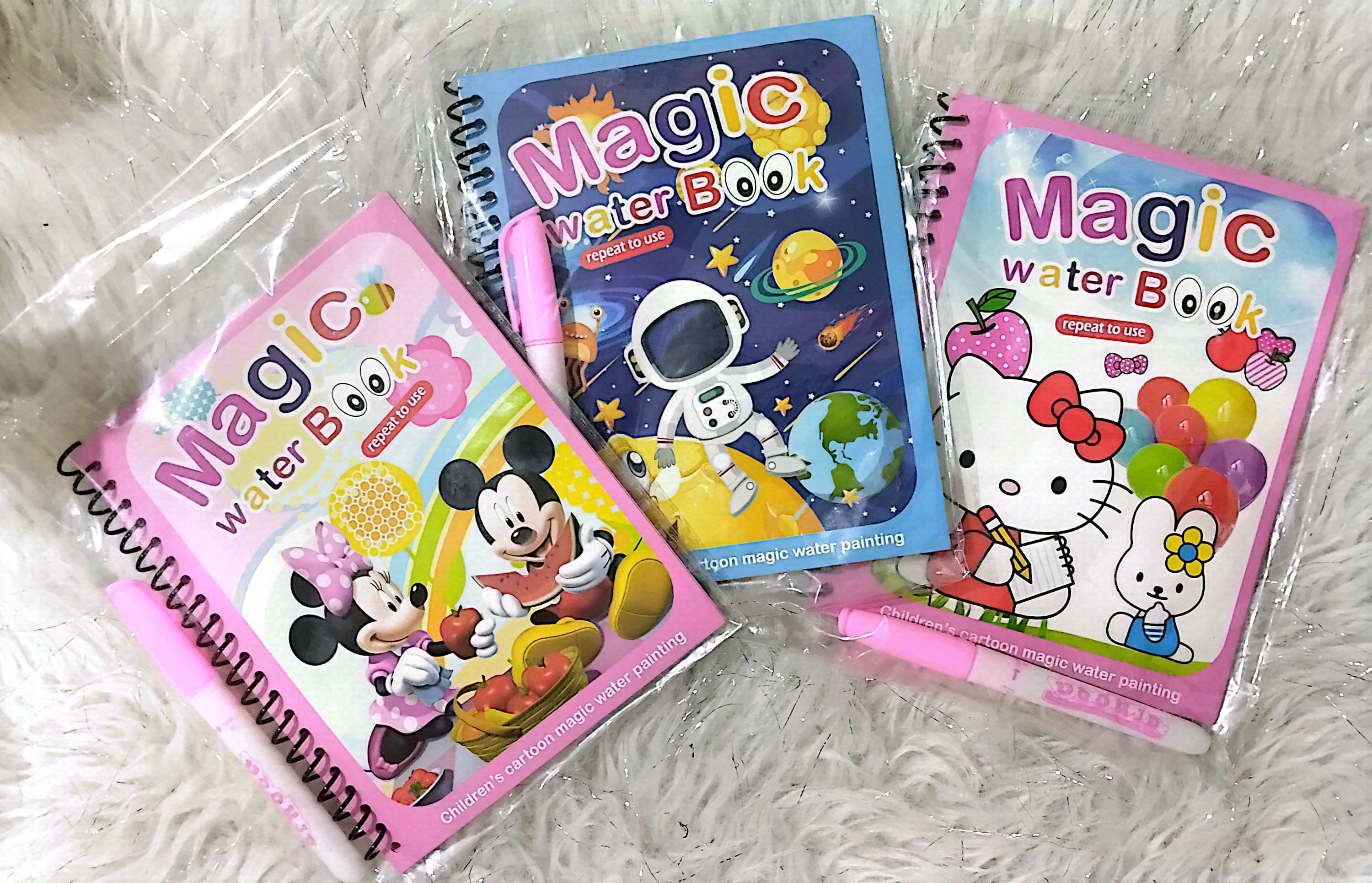 كتاب التلوين السحري هو الحل الأمثل للأطفال الصغار للاستمتاع بالتلوين من غير الحاجة للالوان يأتي مع الكتاب قلم مخصص يتم ملأه بالمياه ويقوم الطفل بتلوين الصفحة ثم تركها لتجف ويعاد التلوين مرات ومرات