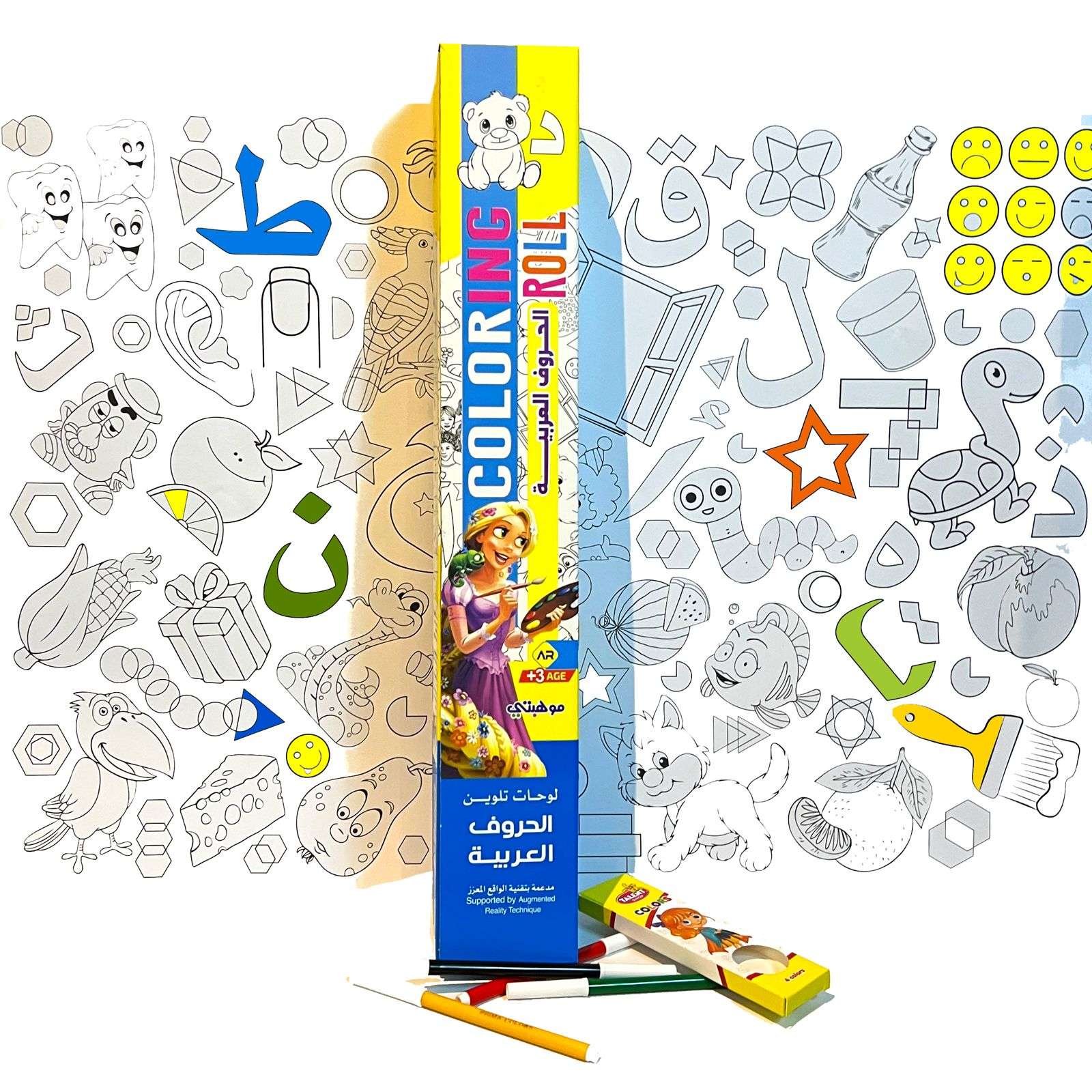 مقاس الرول الواحد 50 * 70 سنتيمتر يحتوي علي عدد 4 رول في كل علبة تحتوي العلية علي 2 متر من الاشكال والرسومات المدعمة بالواقع المعزز رول التلوين مصنوع من ورق مخصص للرسم والتلوين ويقبل أنواع عد