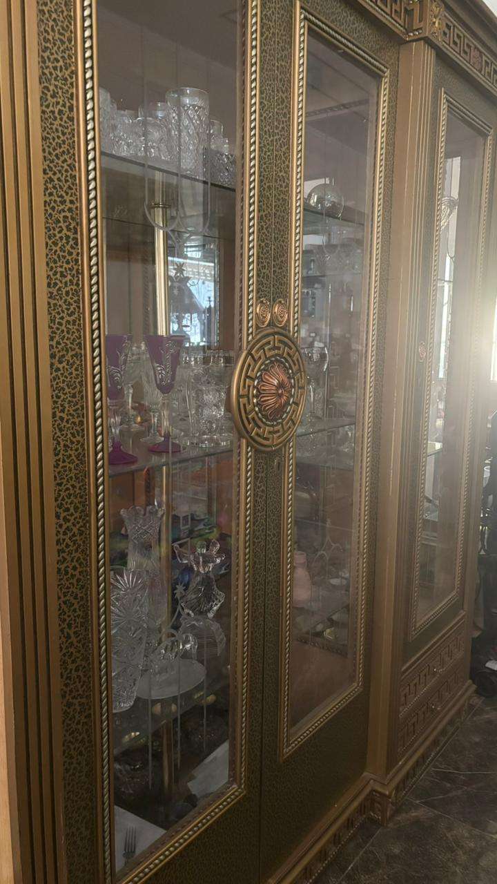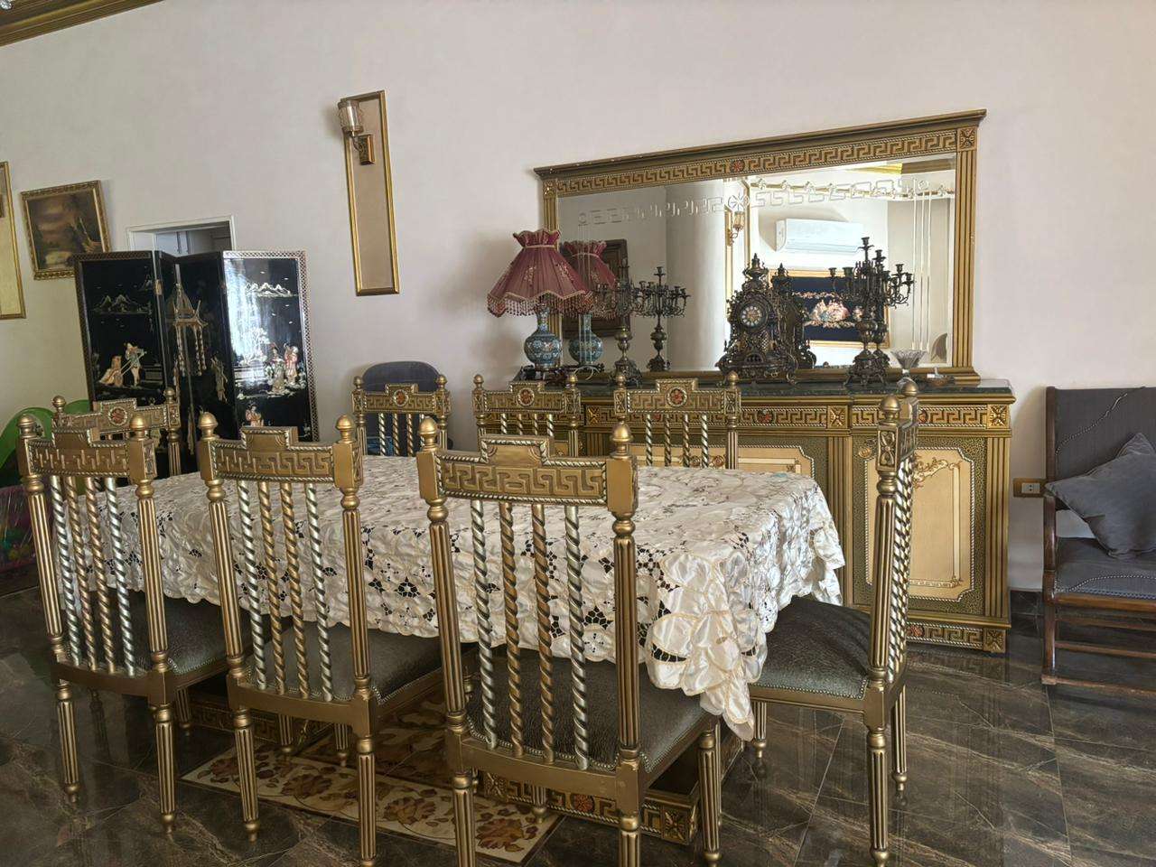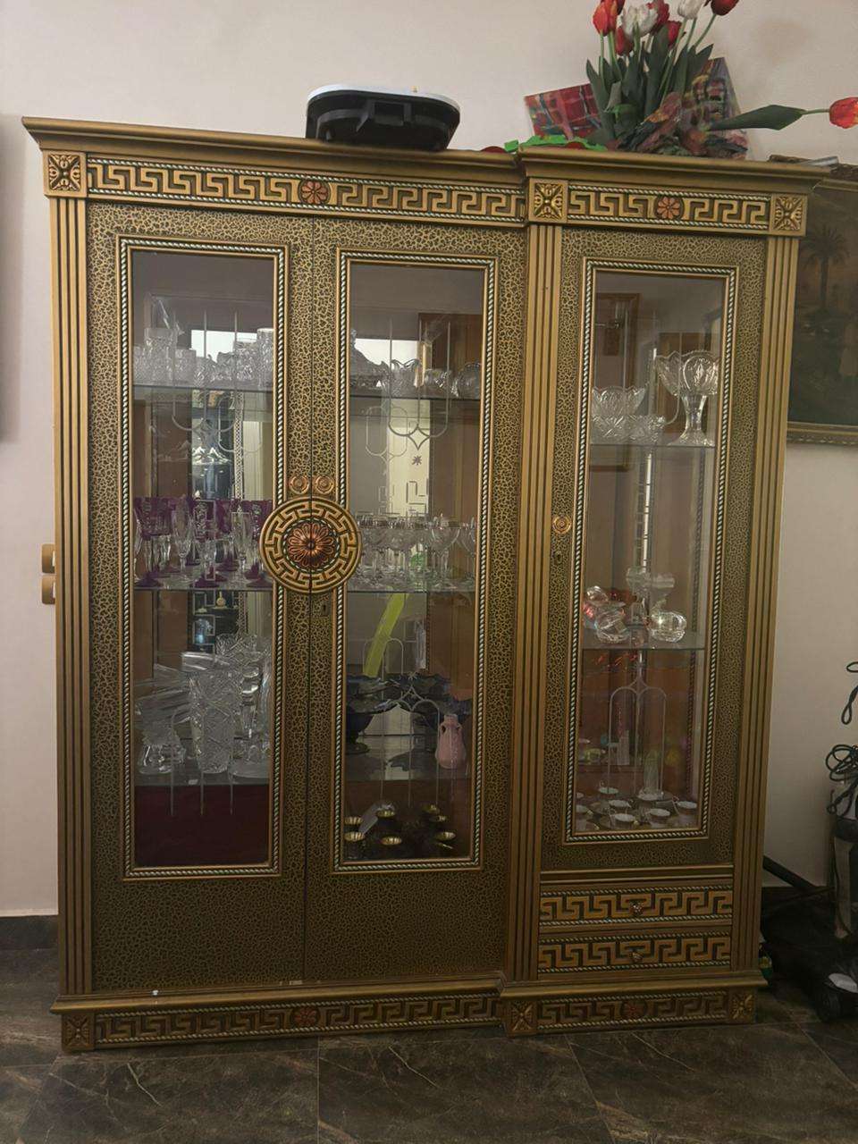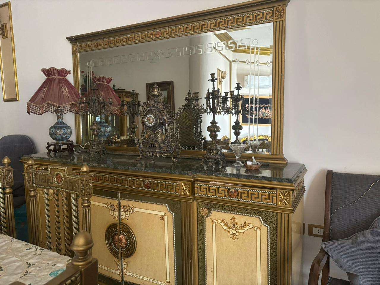 سفرة ٣ قطع بنورة قزاز بلجيكي و ٨ كراسي نيش ٣ اضلف بوفيه٦ اضلف بمرآة كبيرة