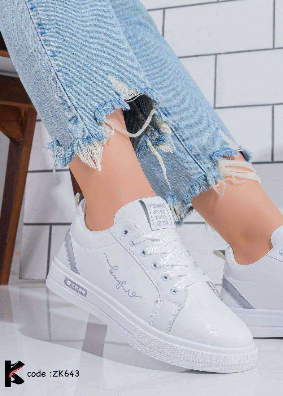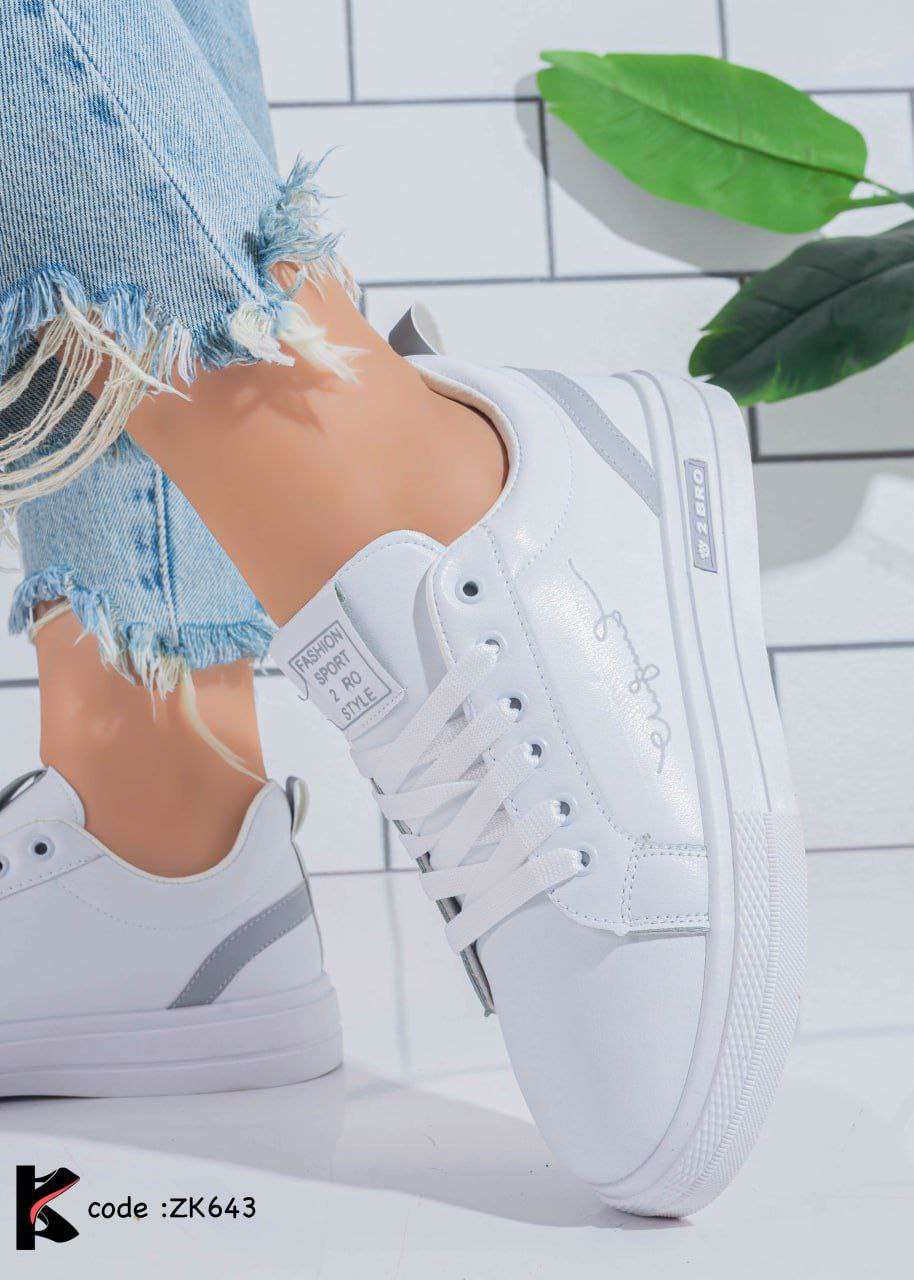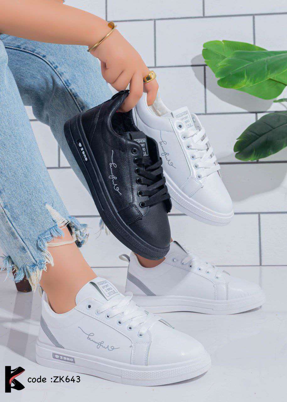 كوتشي فلات ابيض بسيط و عملي مقاس من 37 : 41 قالب مظبوط اسود ابيض رمادي اسود *ابيض
